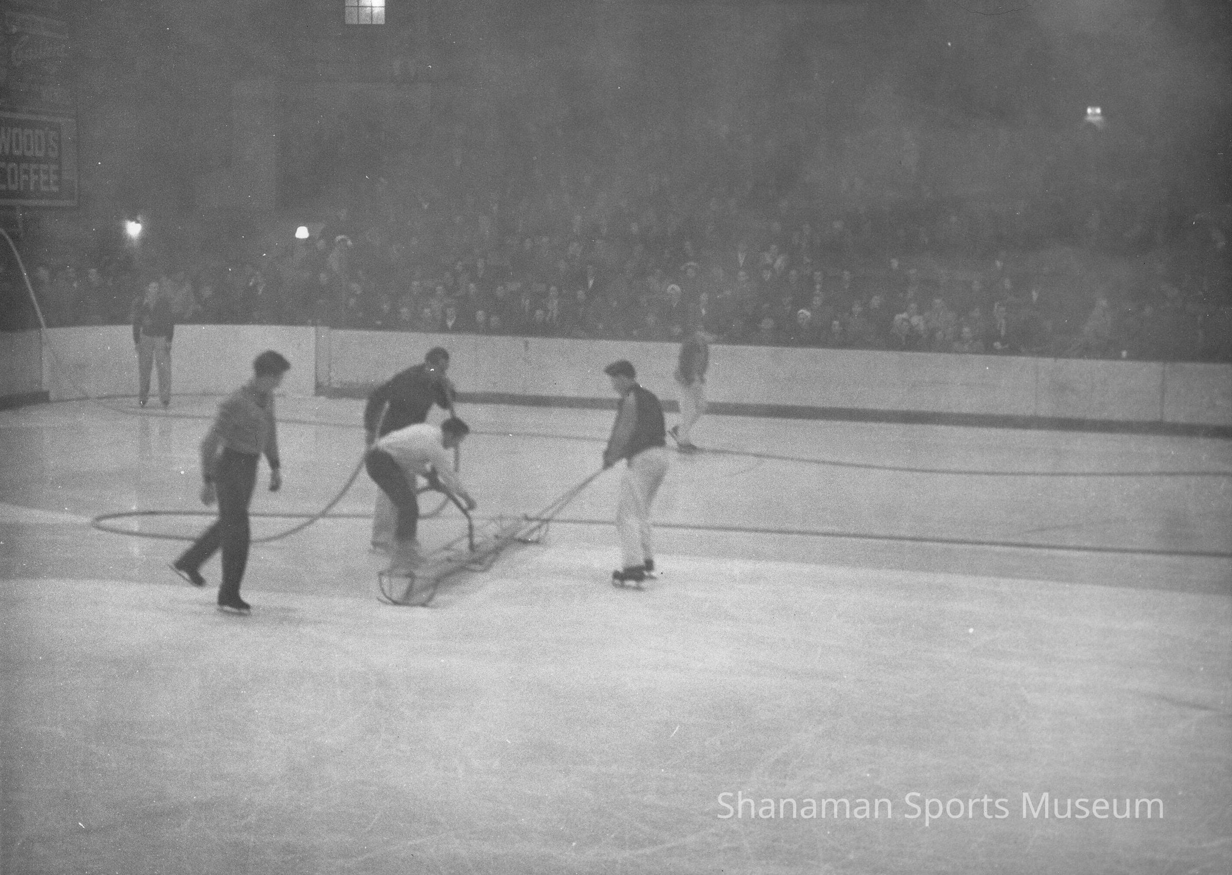 Workers repair the ice at the Lakewood Ice Arena between performances. The ice arena was home to many top level skaters when it opened in the 1930s. It was a popular hangout spot for families and couples, and teenagers. The ice arena was home to many top level skaters when it opened in the 1930s and hosted touring ice shows throughout most of its existence.Made/Created