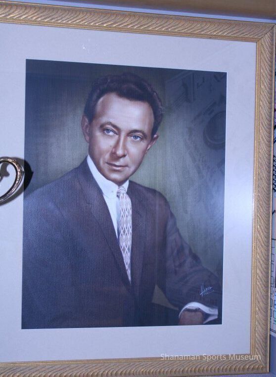 Pastel drawn portrait of Morley Brotman. Background is olive green; he wears brown suit with diamond patterned tie. By "Harta"Relationships