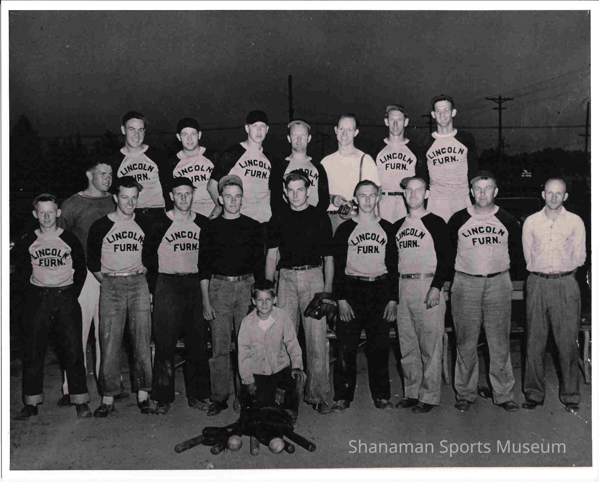Seventeen members and a bat boy of the Lincoln Furnace baseball team pose for a team photograph believed to be in the 1940s.Lexicon