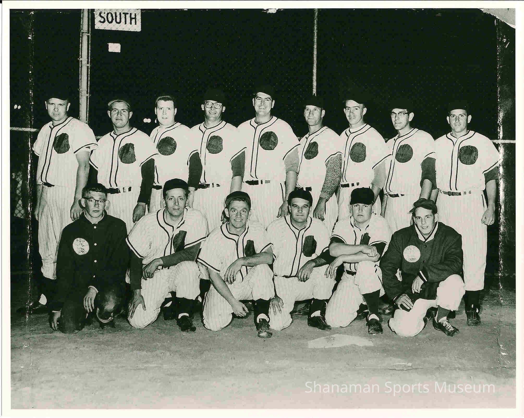 This a black-and-white photo taken in the 1950s of Dick Yohn and his teammates with the the Spring Air Mattress faspitch softball team. Yohn, who graduated from Stadium High School in 1956, is one of the best pitchers in fastpitch from Tacoma. In 1985, he was inducted into both the Pacific Northwest Hall of Fame and the Seattle Metro Hall of Fame. He pitched 21 years in the Northwest Regionals and earned all-star recognition in 1955, the year before he graduated from high school. In 1986, he wrapped up his career pitching for a Shelton team and then moved to Hawaii. He was inducted into the Tacoma-Pierce County Sports Hall of Fame in 2008.Lexicon