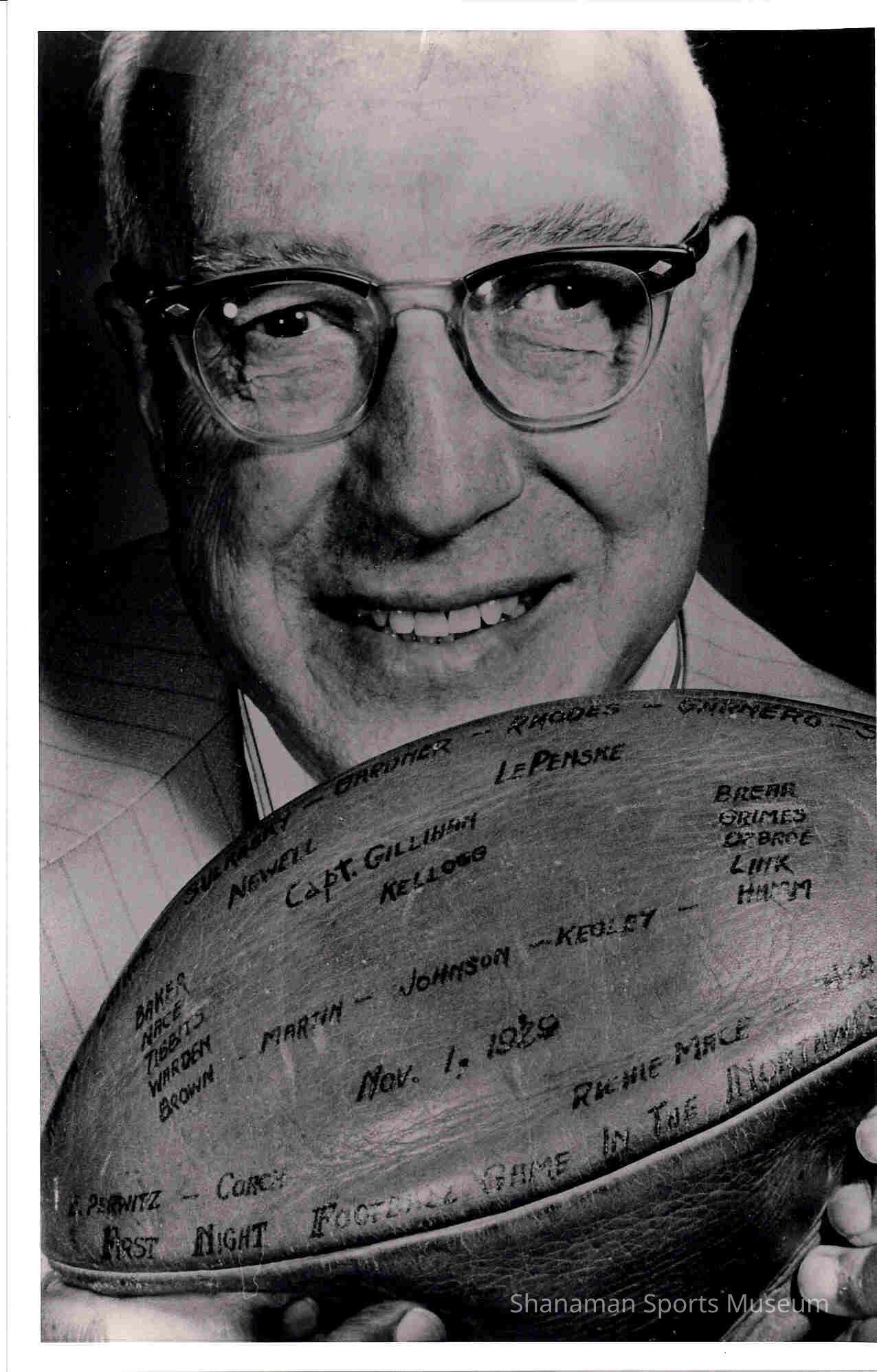 Frank Gillihan played for the University of Puget Sound, which was called the College of Puget Sound in the late 1920s, and played against such colleges as Gonzaga, Battleship at Bremerton, Ellensburg Normal, Pacific University and the University of Washington at Tacoma. It was the game against the Huskies that is believed to be the first night time football game played in the Northwest on November 1, 1929.Lexicon