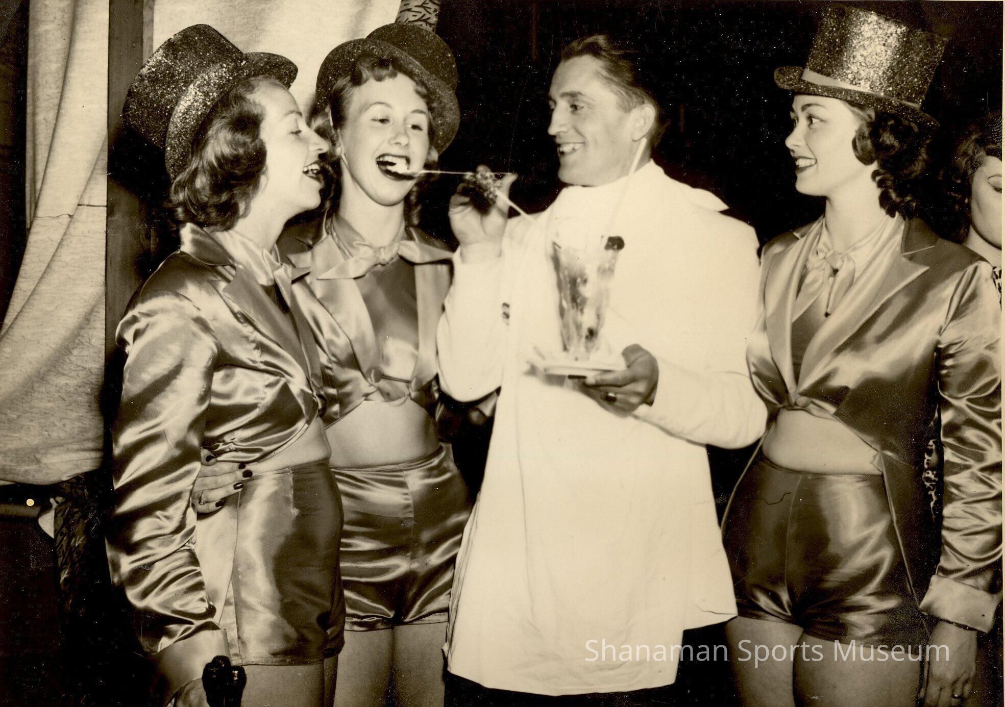 Performer John Johnson shares an ice cream sundae with three other skaters from the Ice Capades Show in 1950. The arena was the place to be for Tacoma residents. It quickly became an entertainment hub when it opened in 1938. The rink continued to provide skating lessons, was a popular hangout spot for teenagers, offered skating parties and hosted the Ice Follies and Ice Capades until part of the building collapsed in 1982 and the rest was demolished shortly thereafter.
