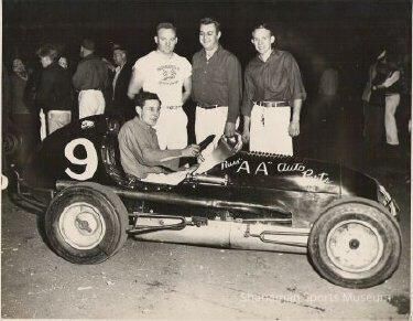 Russ Congdon sits in the race he often drove and three men stand behind this race car, which had the No. 9. From left to right, the three standing men are Claud Lathrup, owner Bill Hondle and Bill Sidelman. Congdon, who was born in Puyallup in 1924 and died there in 1998, raced mainly in midget and sprint cars. He was a popular and frequent midget and sprint car racer in the late 1950s and the early 1960s. He won three notable midget races, winning in Detroit in 1958, at the South Bend Speedway in Indiana in 1960 and at Columbus Motor Speedway in Ohio in 1961. In 1964, he was involved in a bad crash that burned him and limited his racing.Lexicon