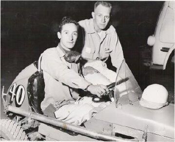 Driver Eddie Guth and Bill Sidelman, the owner of the race car No. 40, both pose for this black-and-white photo taken in 1955. Guth was a frequent driver in midget car races back in the 1950s and 1960s. Sidelman helped support car racing in Tacoma by supplying race cars and hiring race car drivers for many years. Sidelman donated the photo.Lexicon