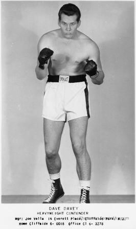 Dave Davey posing for a photo in a boxing pose. Davey was a former heavyweight boxer who was born on March 18, 1929 in Tacoma, Washington before growing up in Cliffside Park, New Jersey. Davey made his debut on June 6, 1946 in a loss to Joe Bonn at the Midway Arena in Tacoma. Davey finished his nine year career with a record of 33-5-2 with 11 knockouts.Lexicon