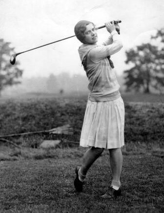 Marjorie Jeffries Shanaman posing during her swing while out on the golf course. Shanaman played up to a 2-handicap by the time she was 18 years old in 1925, and participated in the first Tacoma City Women’s Amateur where she was a medalist after reaching the qualifying round. Shanaman defeated Mrs. Guy Riegel, the 1926 PNGA champion, 1 up in the quarterfinals and Elizabeth Curran, the 1919 PNGA champion, 8 and 7 in the 36-hole finals. Shanaman defeated Reigel, again 1 up, to win the State Women’s Championship in 1928.Lexicon