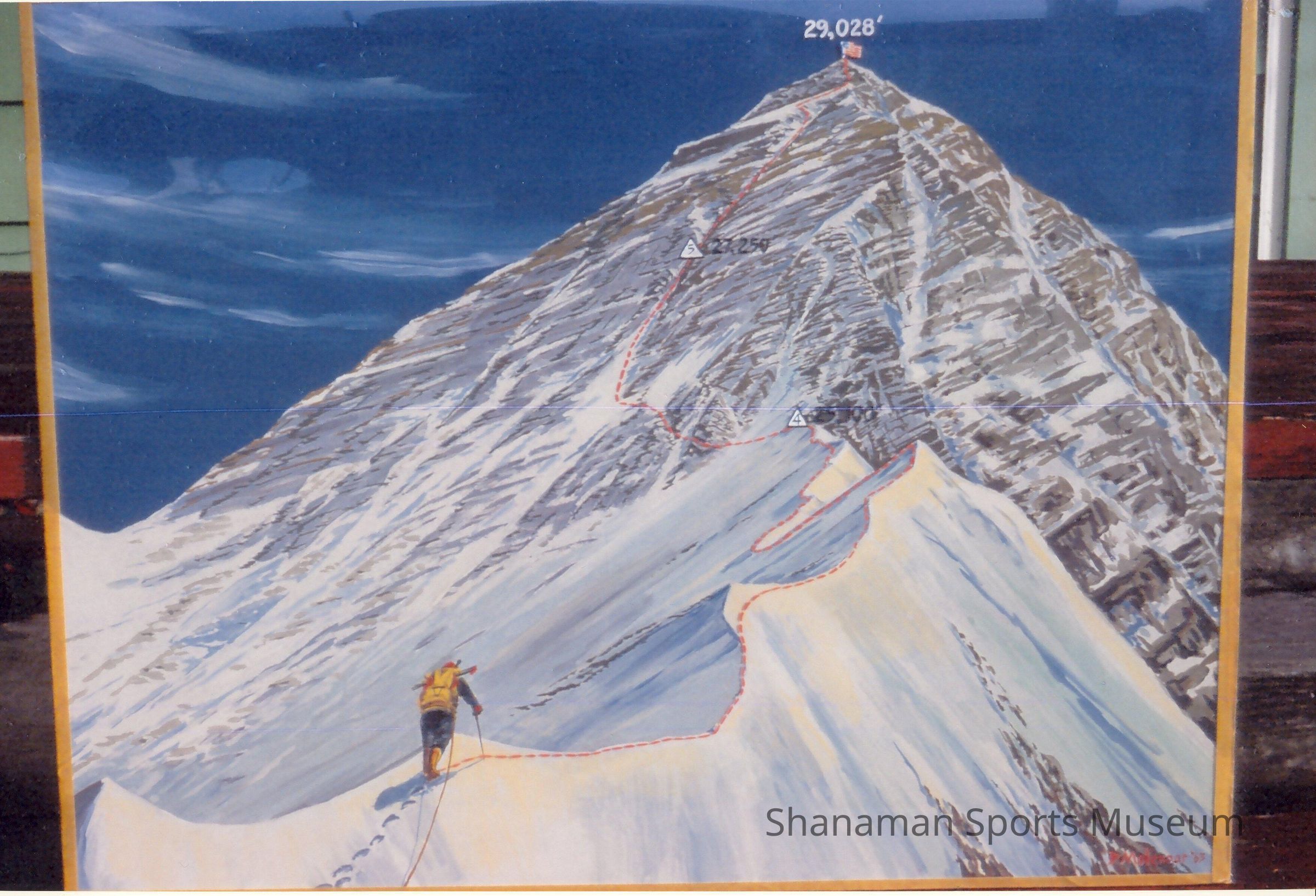 An artist’s rendering of a member of the 1963 United States expedition making his way to the summit of Mount Everest, the world’s highest peak. The expedition included Lute Jerstad, who grew up in Gig Harbor and played basketball at Pacific Lutheran University. Jerstad was the second American to reach the mountain’s summit. He and Ohio’s Barry Bishop reached the summit via the route used in 1953 by Edmund Hillary and Tenzing Norgay when they became the first confirmed climbers to summit Everest.Lexicon