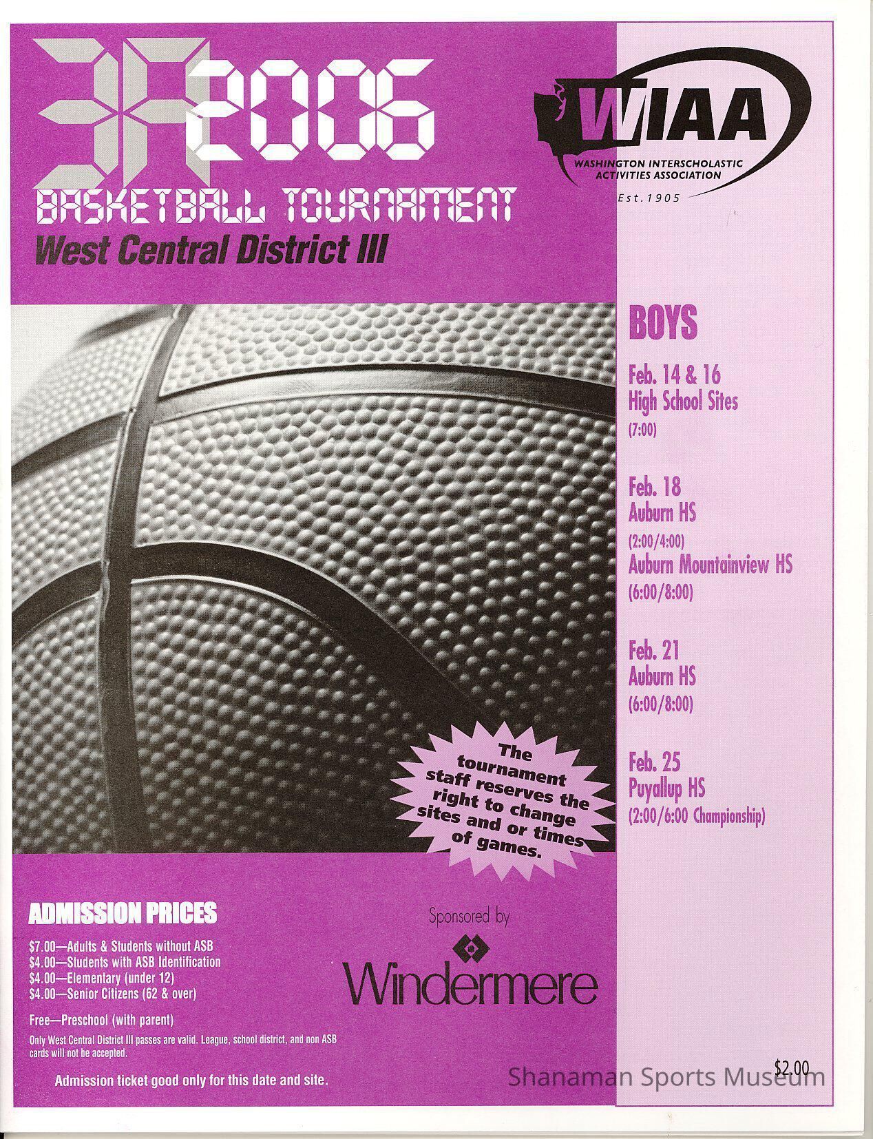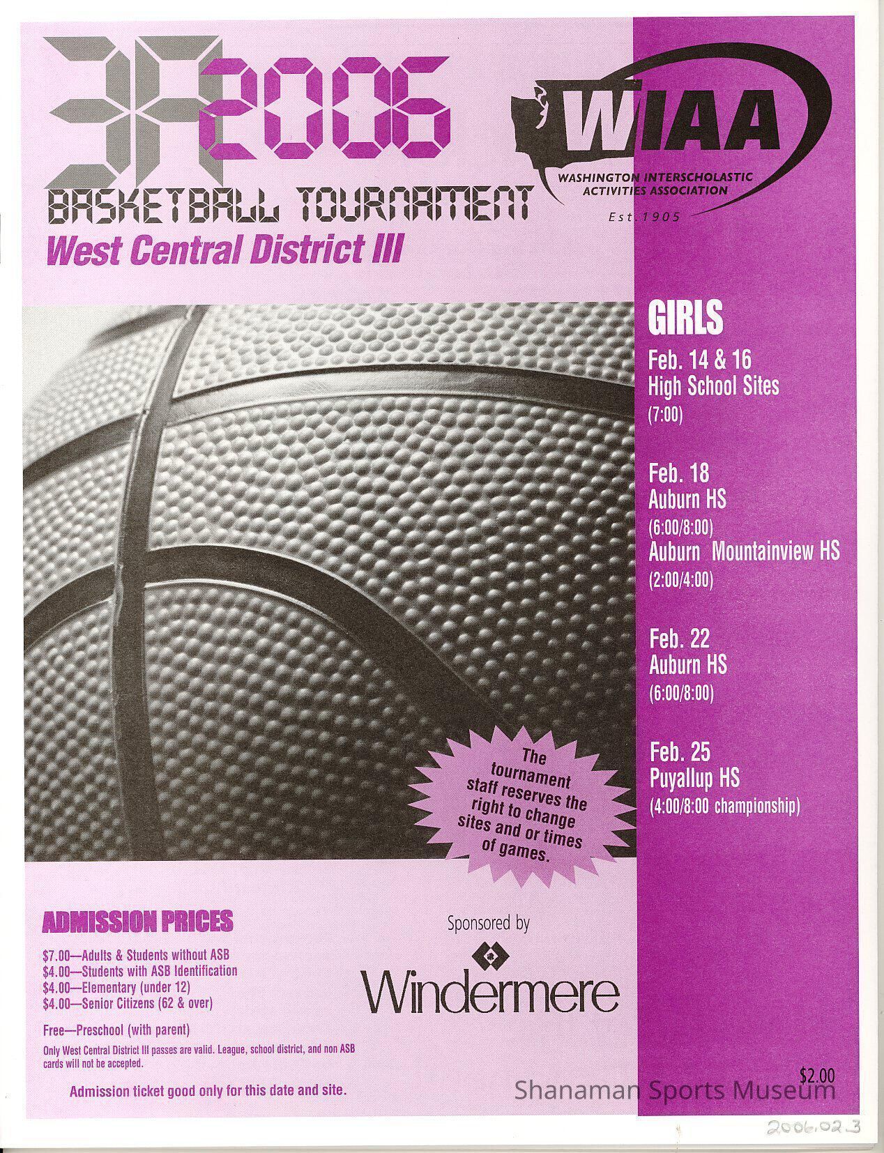 Program, WIAA 2006 3A Basketball Tournament
