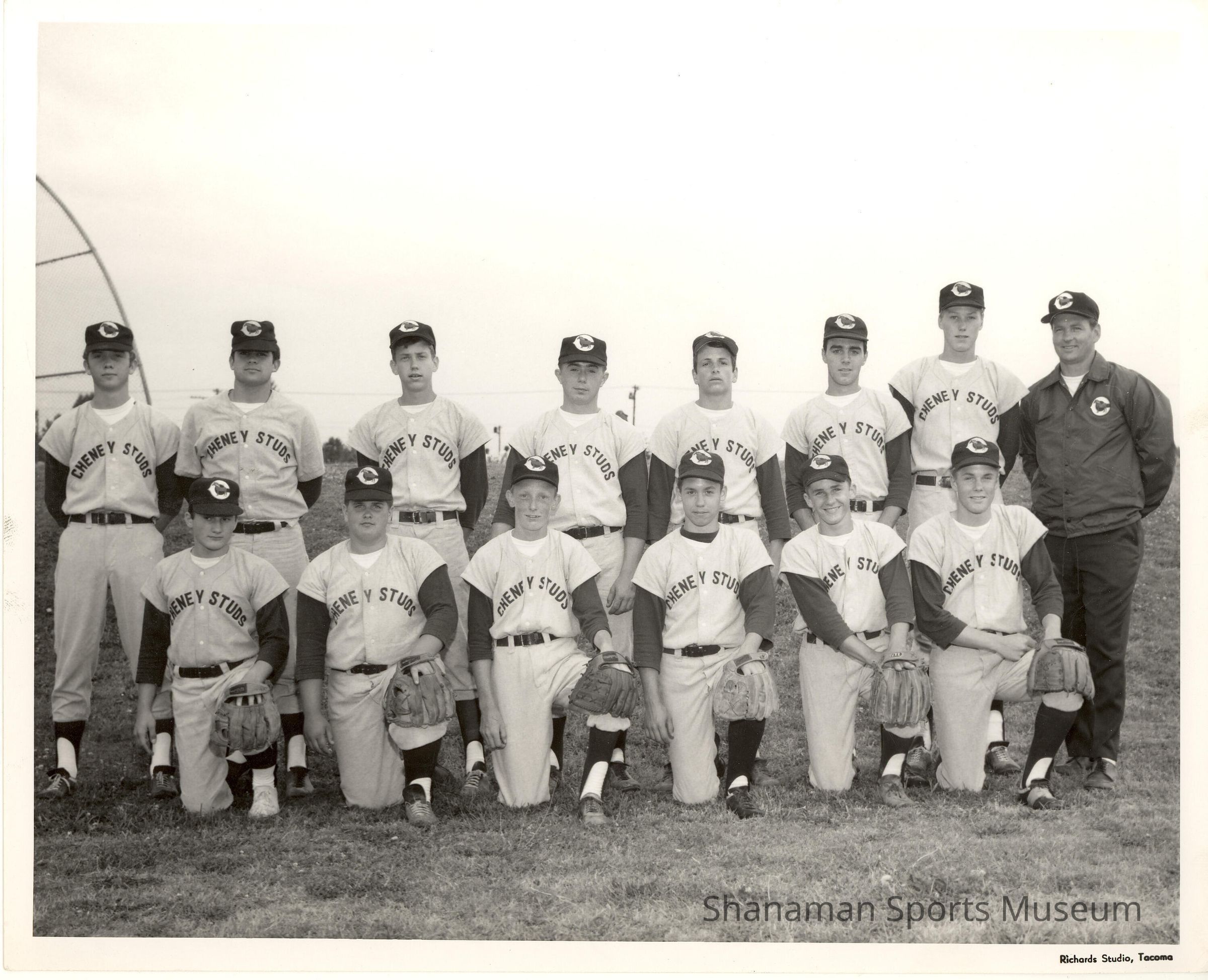 The Tacoma Boys Clubs' baseball team for 15-year-olds, the Cheney Studs, pose for a team picture in 1968. With Jim Cozad as their coach, the Cheney Studs won the junior city championship in 1968. Cozad was no stranger to winning. As a player, Cozad played on the Woodworth Contractors that won the Tacoma city league championship in 1956 and in 1957 that team placed second in the nation. Over the years, the Cheney Studs had a rich winning tradition.Lexicon