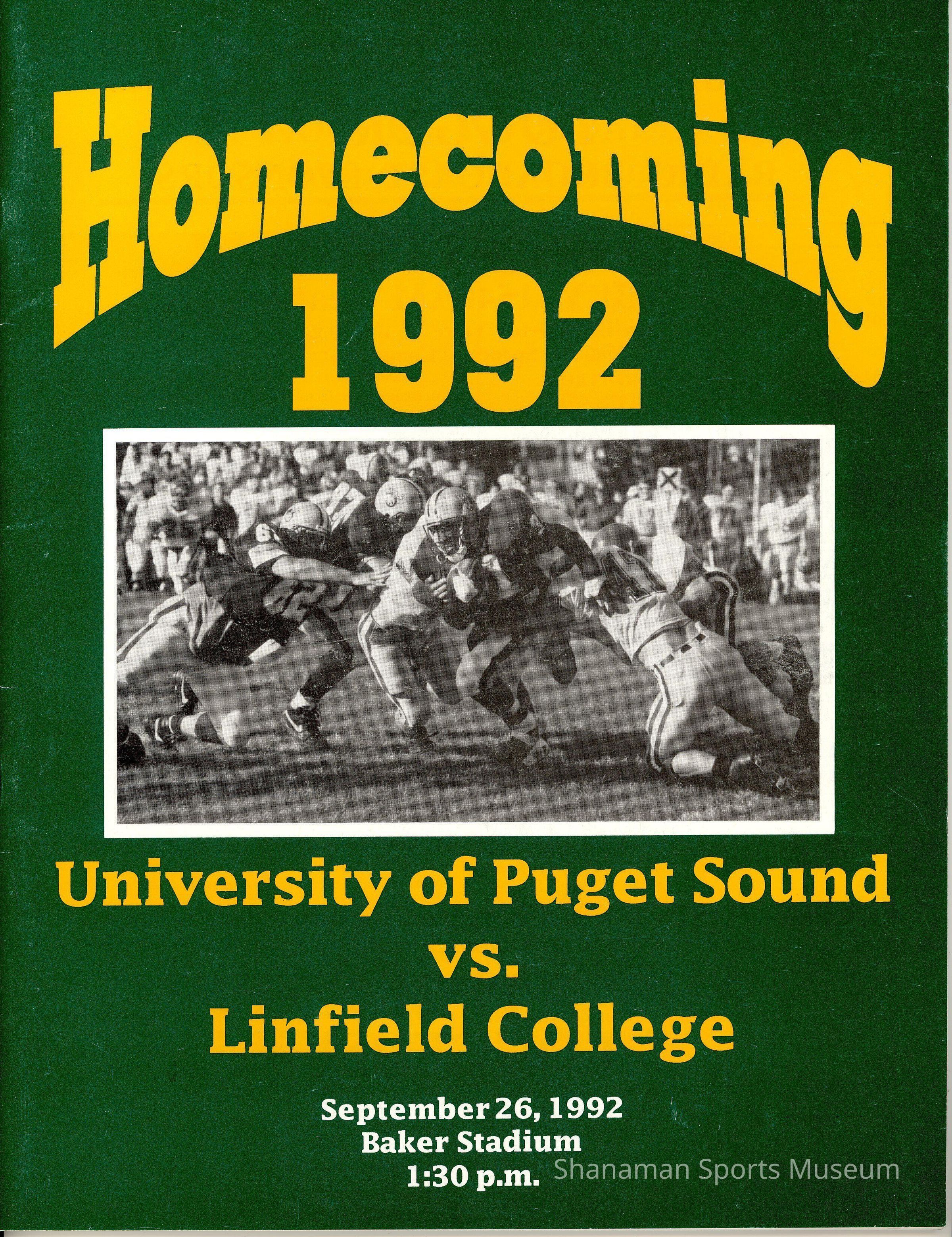 Program, football, UPS vs. Linfield College, Sept. 26, 1992.Archive Details