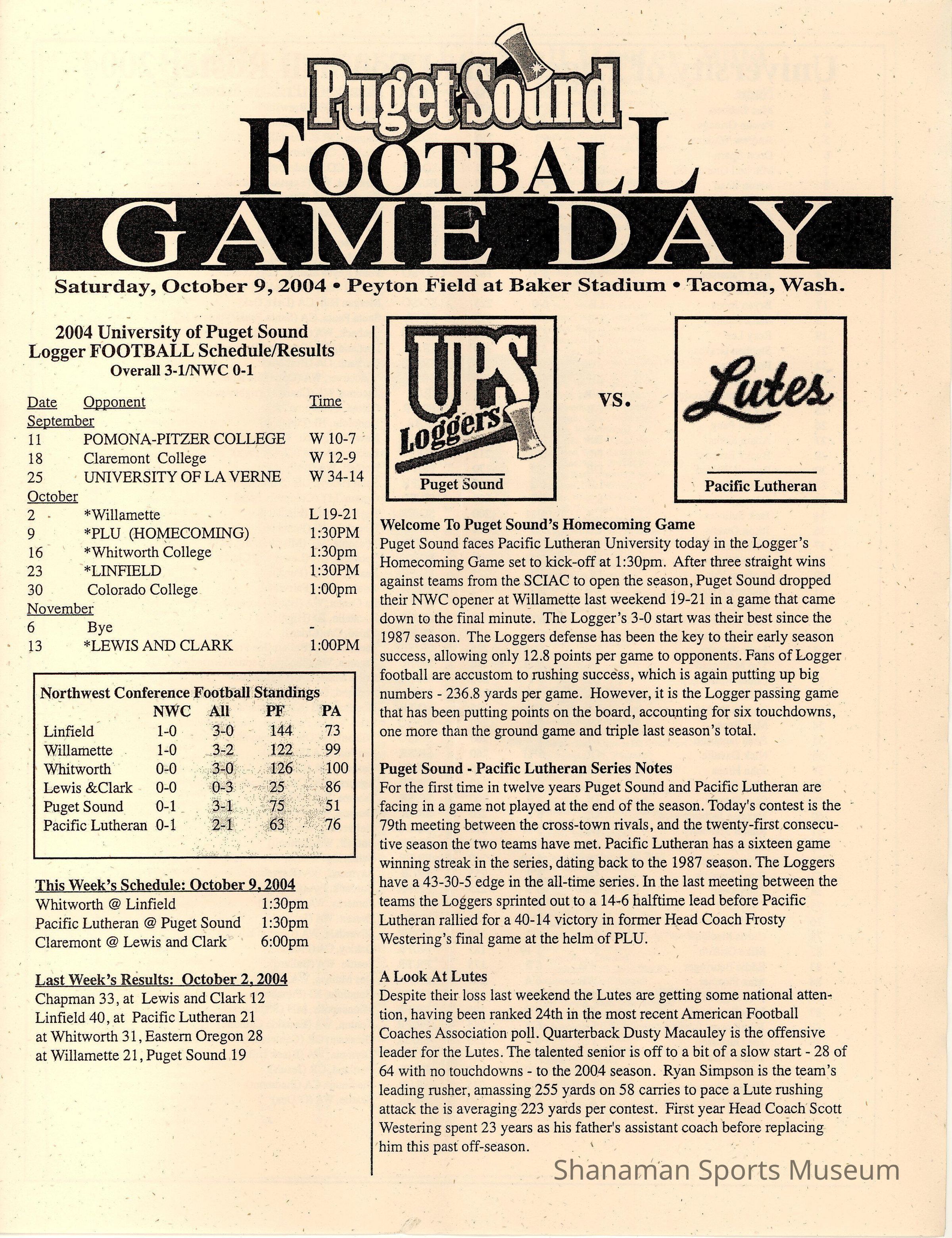 Program, football, UPS vs. Pacific Lutheran, Oct. 9, 2004.Archive Details