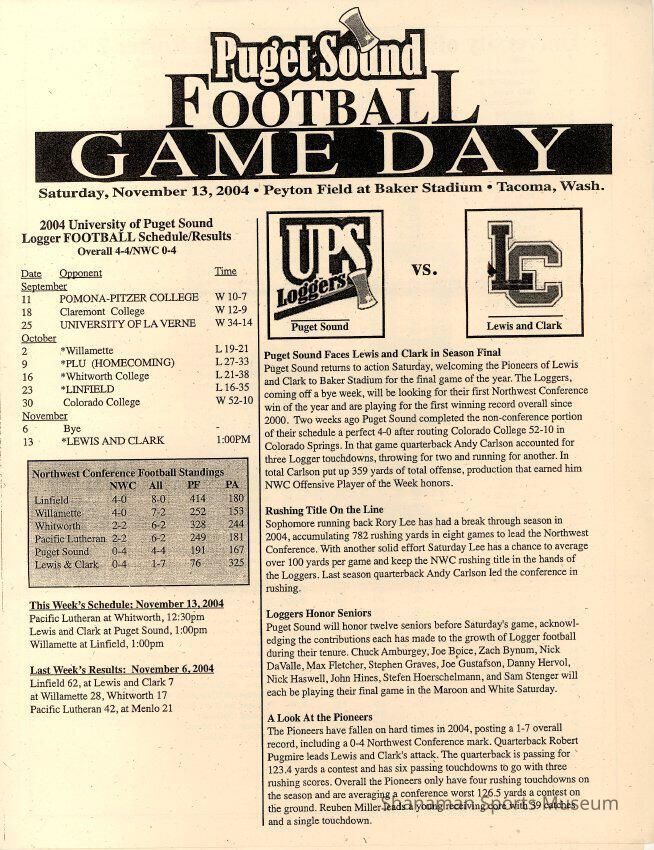 Program, football, UPS vs. Lewis and Clark, Nov. 14, 2004.Archive Details