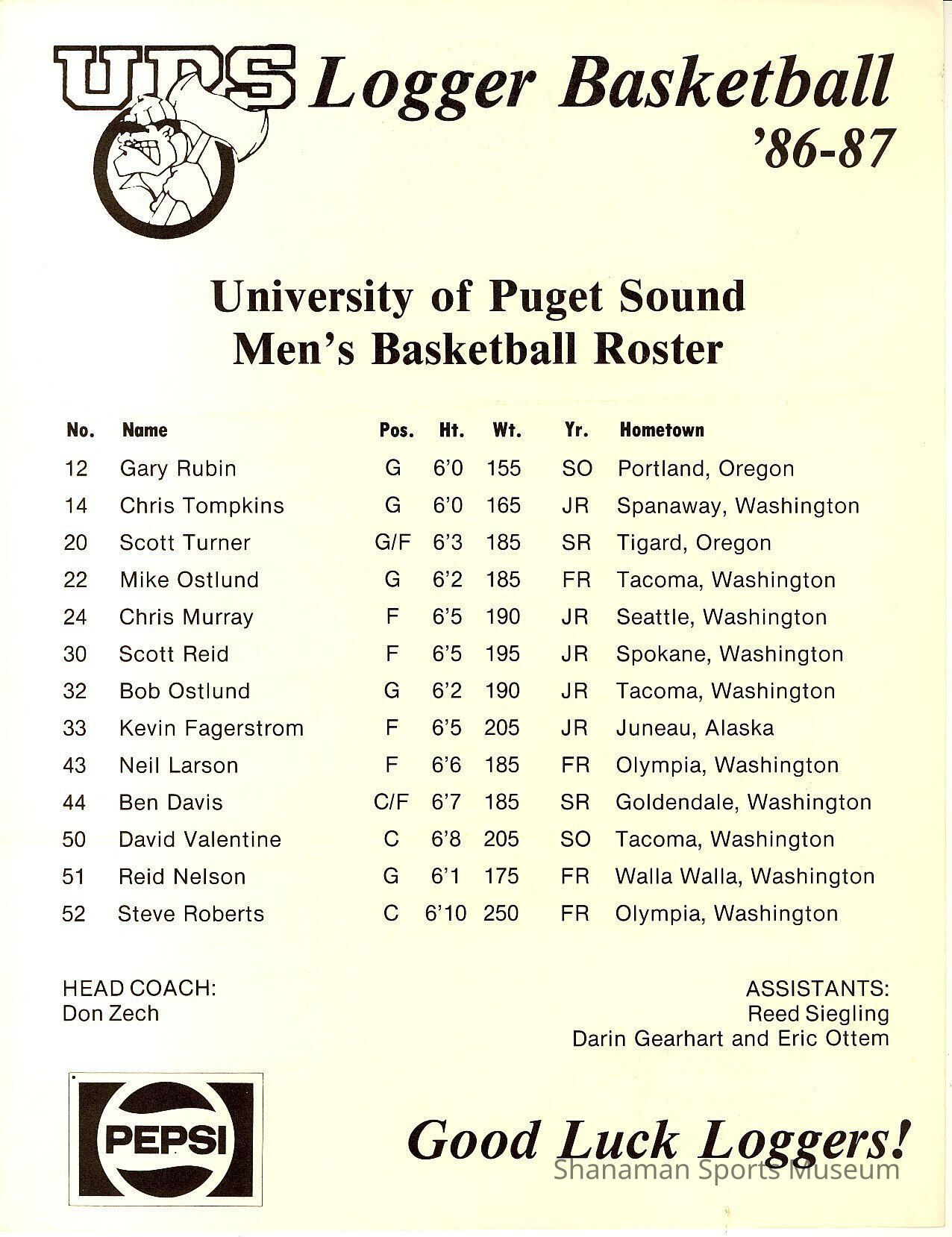 Program, basketball, mens, UPS vs. Central Washington, 1986-87.Archive Details