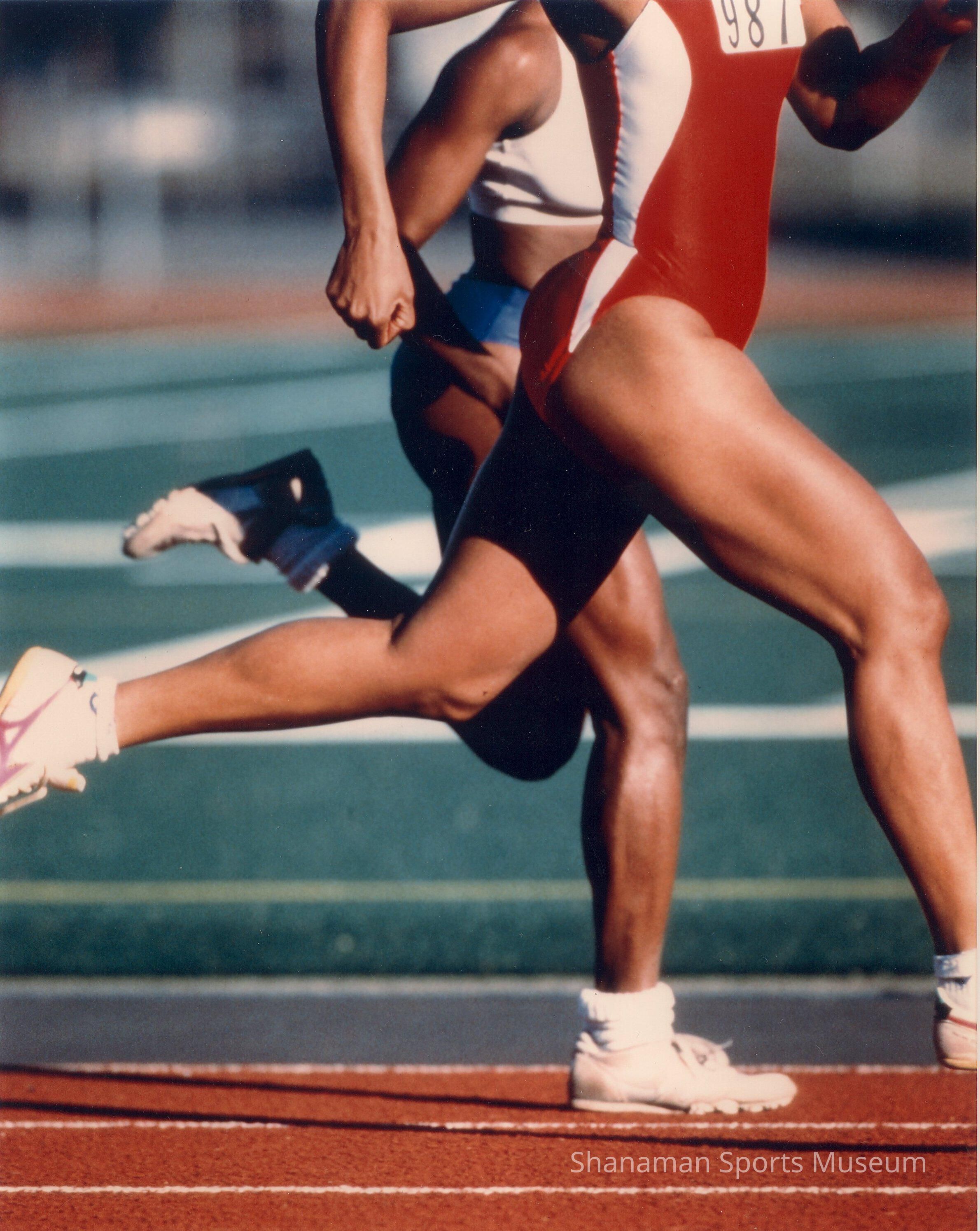 Donna Dennis, wearing a red uniform in a photo of a lower body portrait, races in a sprint event. Dennis, 1982 Clover Park High School graduate, was one of the greatest female sprinters to come out of Washington state. In high school, Dennis won the Washington state track and field championship in the 100, 200 and anchored Clover Park’s winning 4x100 relay to a state record, setting state record along the way at that time. During her senior year of high school, Dennis won the U.S. Junior Track & Field Championship in the 100 and 200 meter races. She went on to win the same events at the Pan American Junior Games in Venezuela. Dennis went on to compete for the University of Washington where she was a three-time NorPac champion in the sprints, and an NCAA finalist in both events. Dennis competed at the U.S. Olympic Trials in 1984 and qualified as an alternate in the 200 in Los Angeles. Dennis entered the Washington State Sports Hall of Fame in 2007. Photo donated by Donna Dennis.