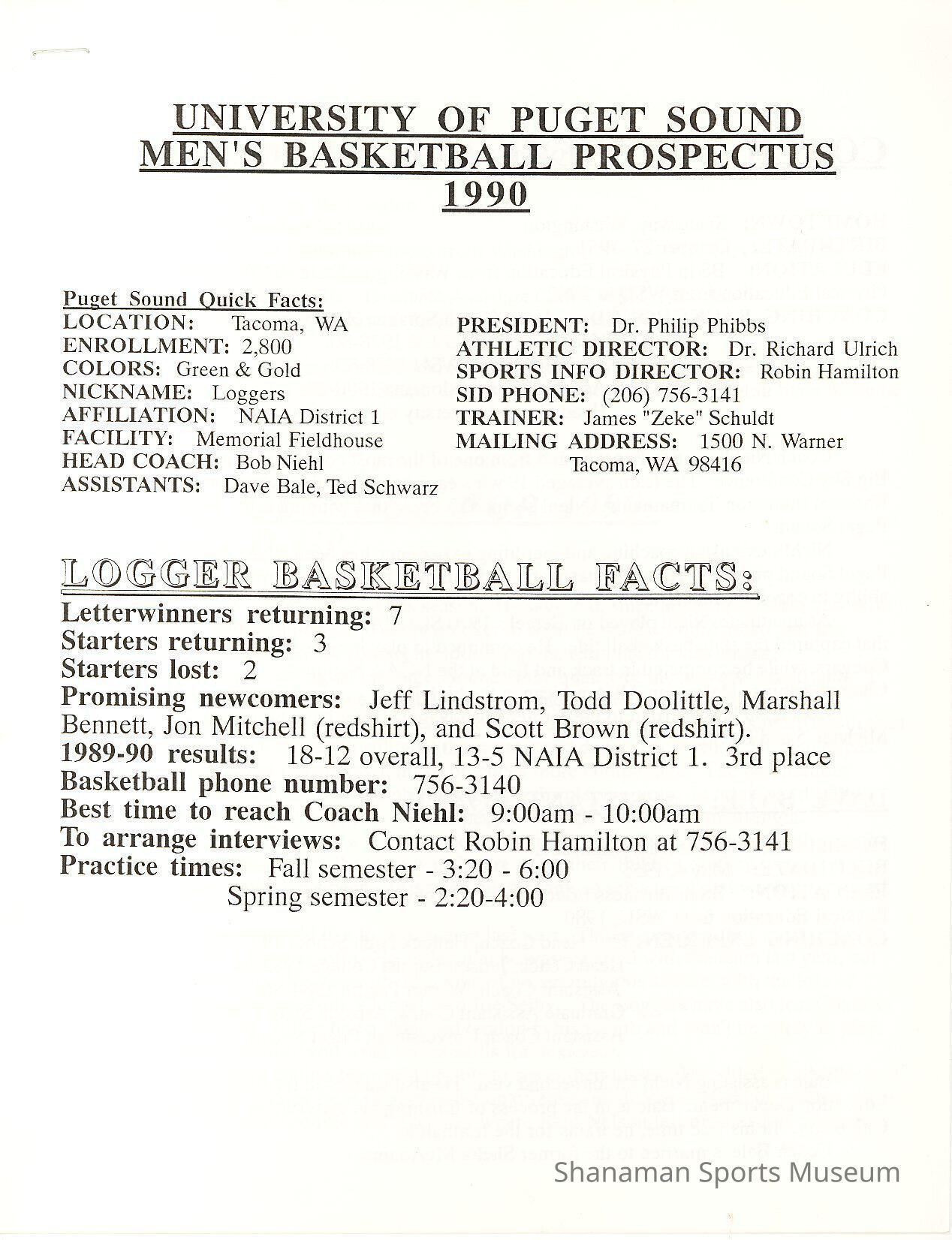 .103- Prospectus, basketball, Mens UPS, 1990.
