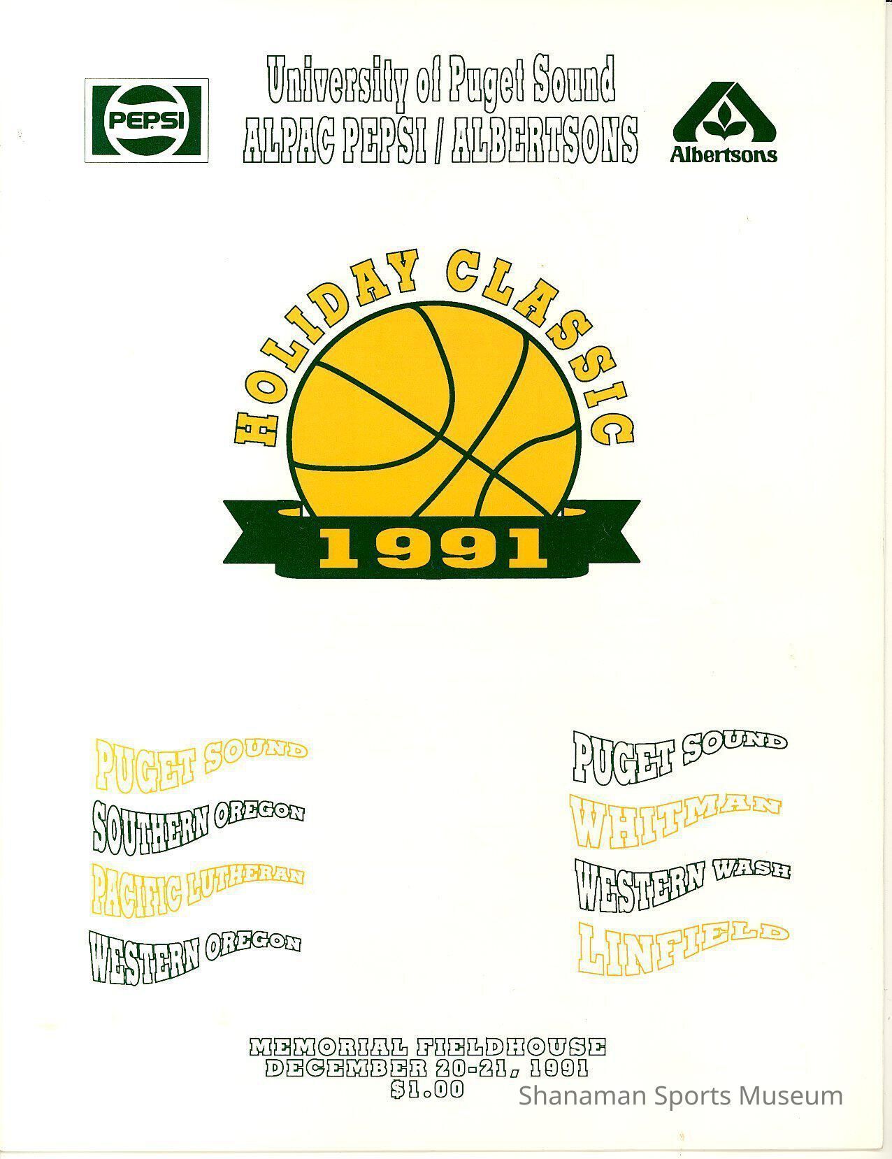 .123- Program, basketball, UPS Holiday Classic, Dec. 20-21, 1991.