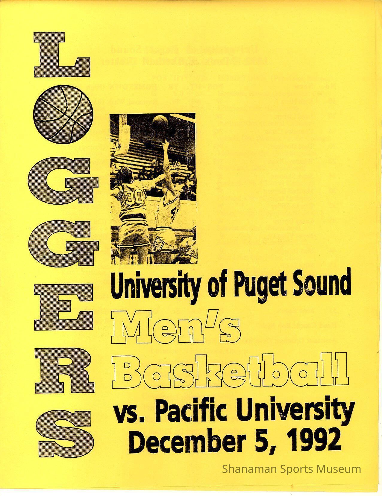 .127- Program, basketball, UPS vs. Pacific University, Dec. 5, 1992.Archive Details
