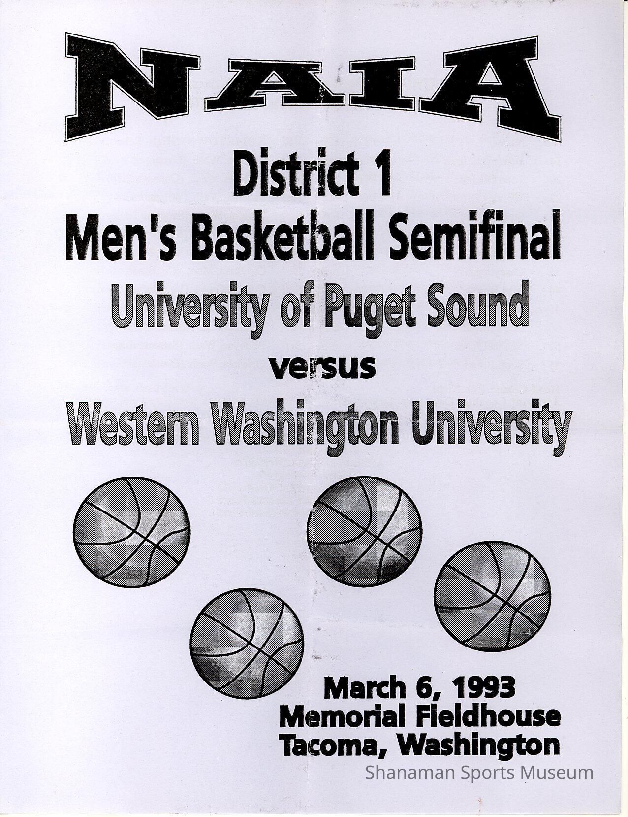 .130- Program, basketball, UPS vs. Western Washington, Mar. 6, 1993.Archive Details