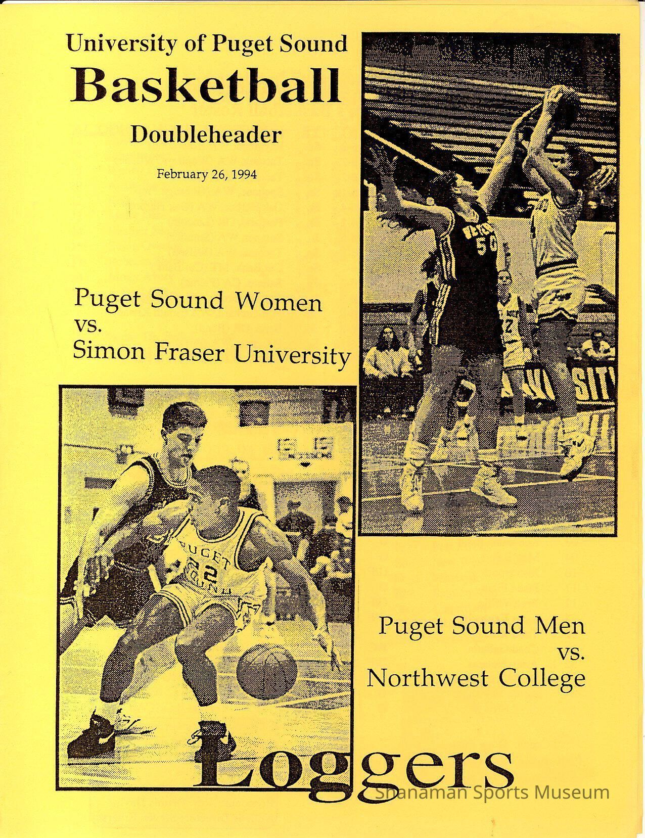 .142- Program, basketball, UPS vs. Simon Fraser and Northwest College, Feb. 26, 1994.Archive Details
