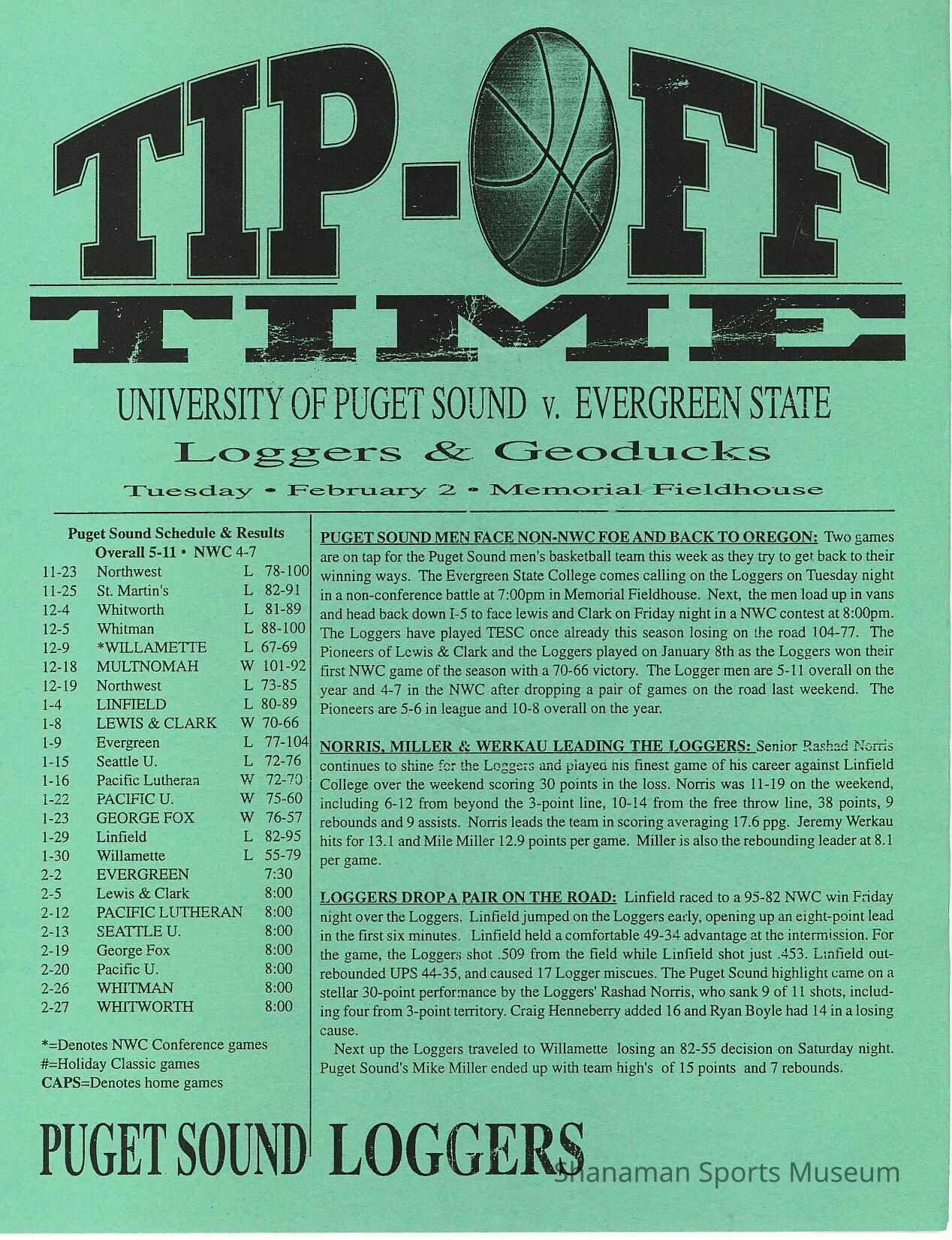 Program, basketball, UPS vs. Evergreen College, Feb. 2, 1999.Archive Details