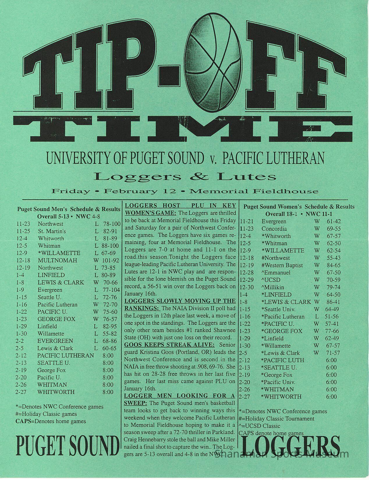 Program, basketball, UPS vs. Pacific Lutheran, Feb. 12, 1999.Archive Details