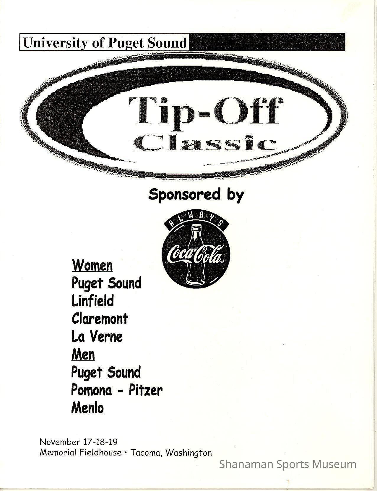 Program, basketball, Tip-Off Classic, Nov. 17-19, 2000.