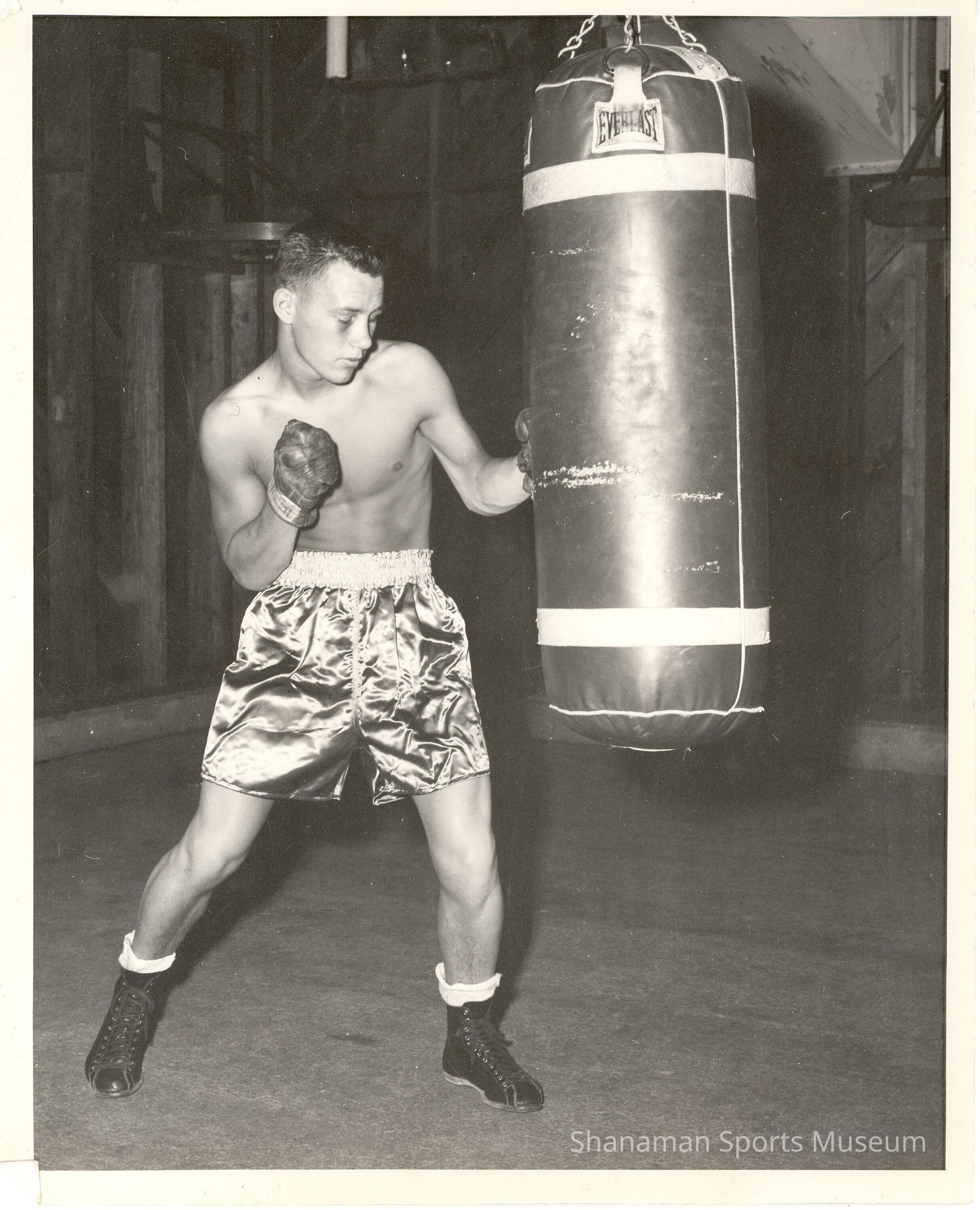 Photo- b/w original, boxer working on punching bag, 1955 Treasure Island N.B.Relationships