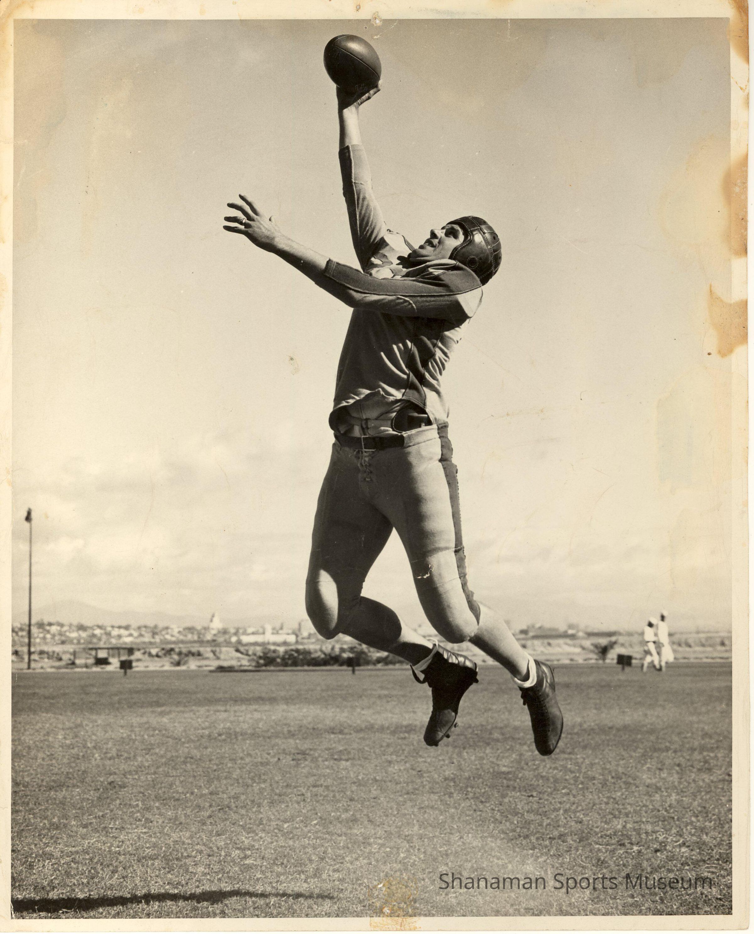 Photograph, b/w, 8x10", Earl Platt in football high catch pose