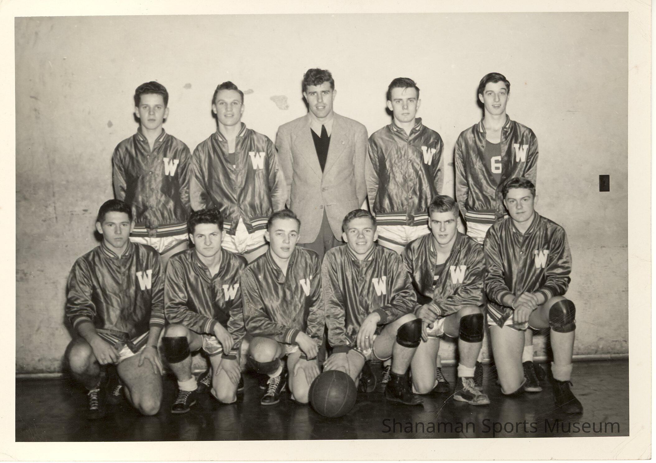 In the back row, coach Earl Platt poses for a photo along with his basketball team from Winlock High School. Before he started to coach high school basketball, Platt was a three-sport starter at Pacific Lutheran College, playing football, basketball and baseball. In 1940, he became one of Pacific Lutheran's first Little All-Americans, earning that honor in football. Platt was also all-conference in basketball and was on the Lute's team that won their first Winco League title. He was inducted into PLU's hall of fame in 1991.Lexicon