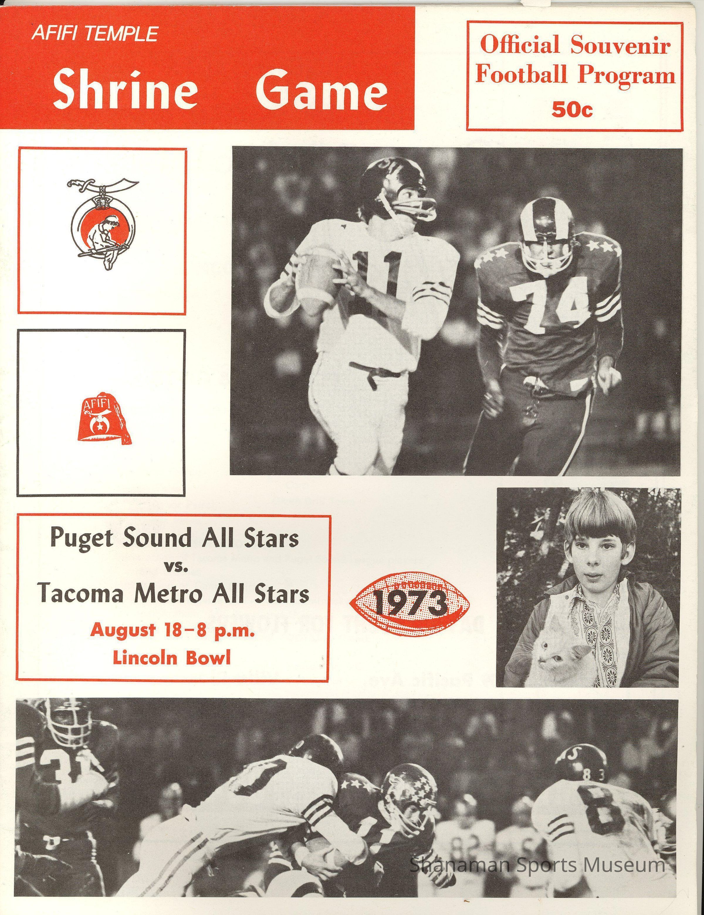 Program, football, Shrine Game, Puget Sound All Stars vs. Tacoma Metro All Stars, August 1973.