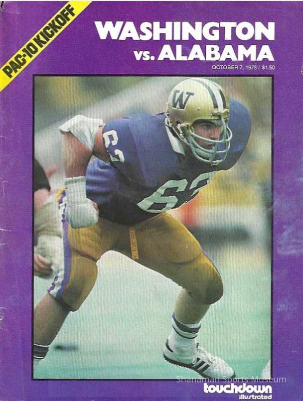 A football program from a University of Washington (UW) vs Alabama game, October 7, 1978. From Touchdown Illustrated, vol. 14, no. 20. From the Pac-10 kickoff.Lexicon