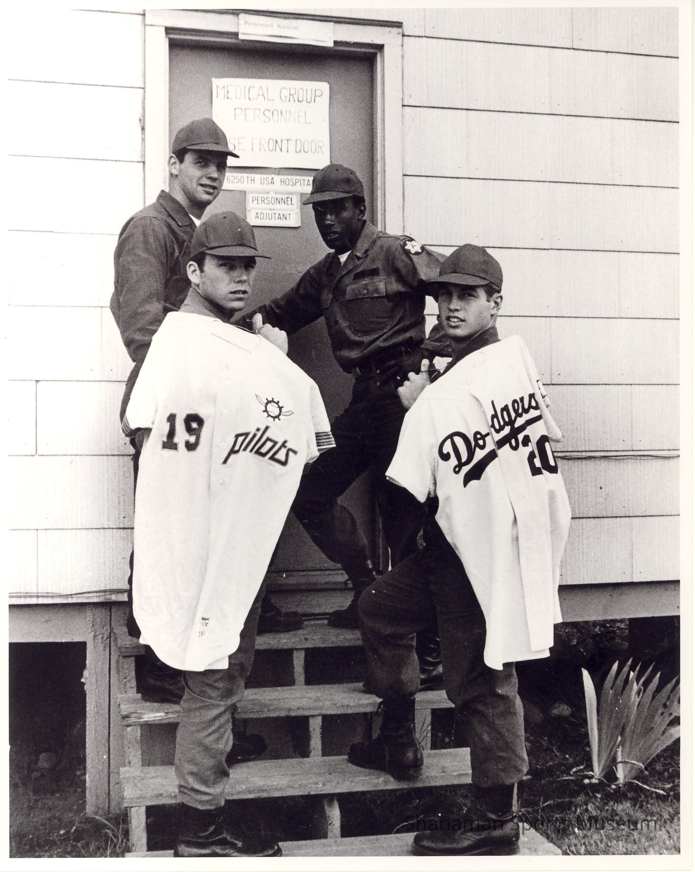 Pictured here are four baseball players who were standouts at Tacoma area high schools in the 1960s and all made it to the major leagues. Upper left is Rick Austin (Lakes HS, left-handed MLB pitcher with Cleveland and Milwaukee). Upper right is Billy Murphy (Clover Park HS, outfielder who reached the majors with the New York Mets). Lower left is Steve Whitaker (Lincoln HS, outfielder who played with the New York Yankees and Seattle Pilots). Lower right is Ron Cey (Mount Tahoma HS, longtime major league third baseman with the Dodgers and Cubs). Pictured here during the Vietnam war, the four were part of an Army reserves medic unit.