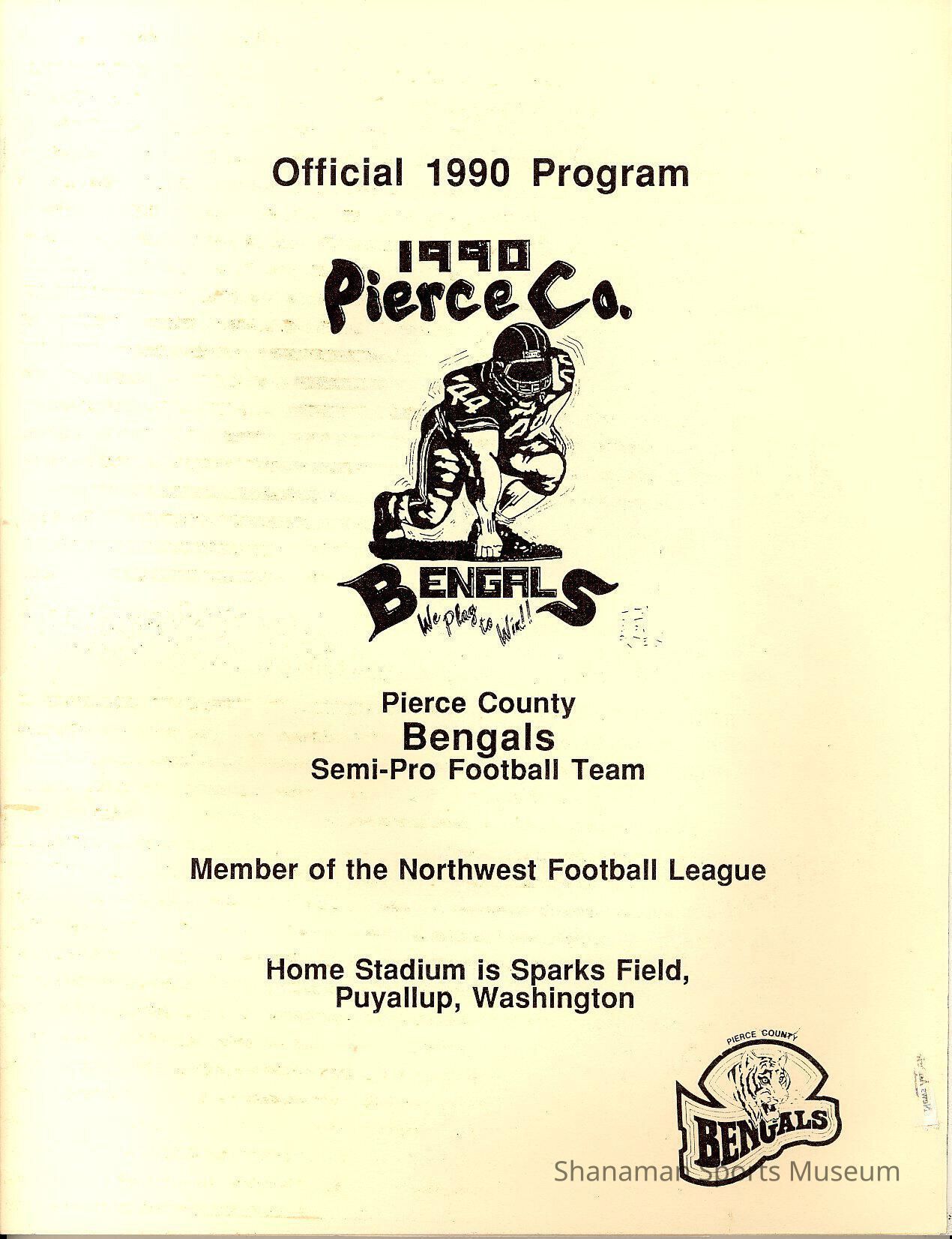 Program- 1990 Offical Program for the Pierce County Bengals Semi-Pro Football team.