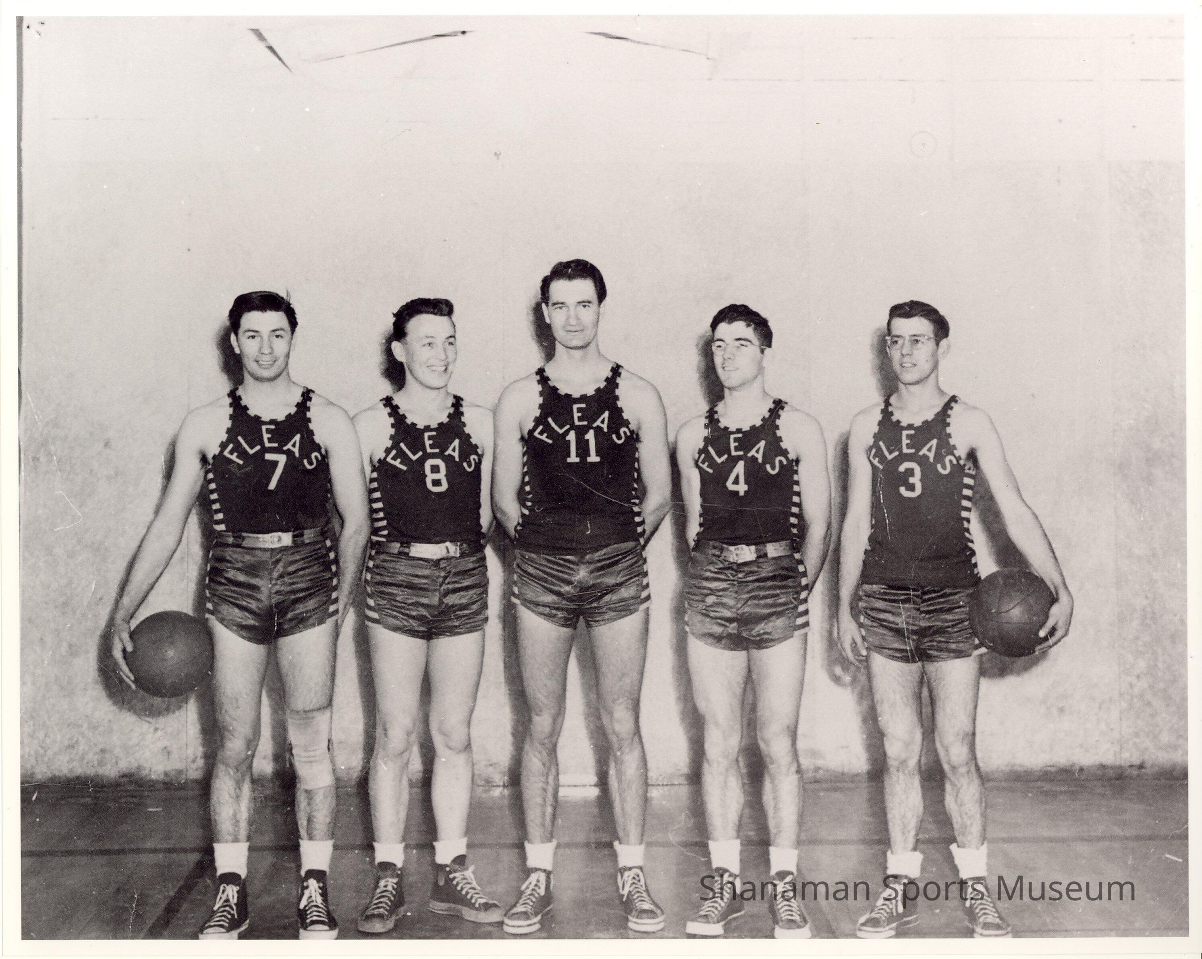 Sid McLaughlin, 11 and Willie McLaughlin, 7, are pictured here playing for one of the local semi-professional teams that proliferated the area in the 1940s. The McLaughlins played at Clover Park High School, as did their more well-known brother, Harry, who was one of the best players of the era and went on to play on prolific semi-professional teams. Players would compete on these semi-pro teams following their college careers and would draw significant crows for high-level games in an era before the game could be seen on television and before the National Basketball Association would become a realistic destination for players like Harry McLaughlin.Lexicon