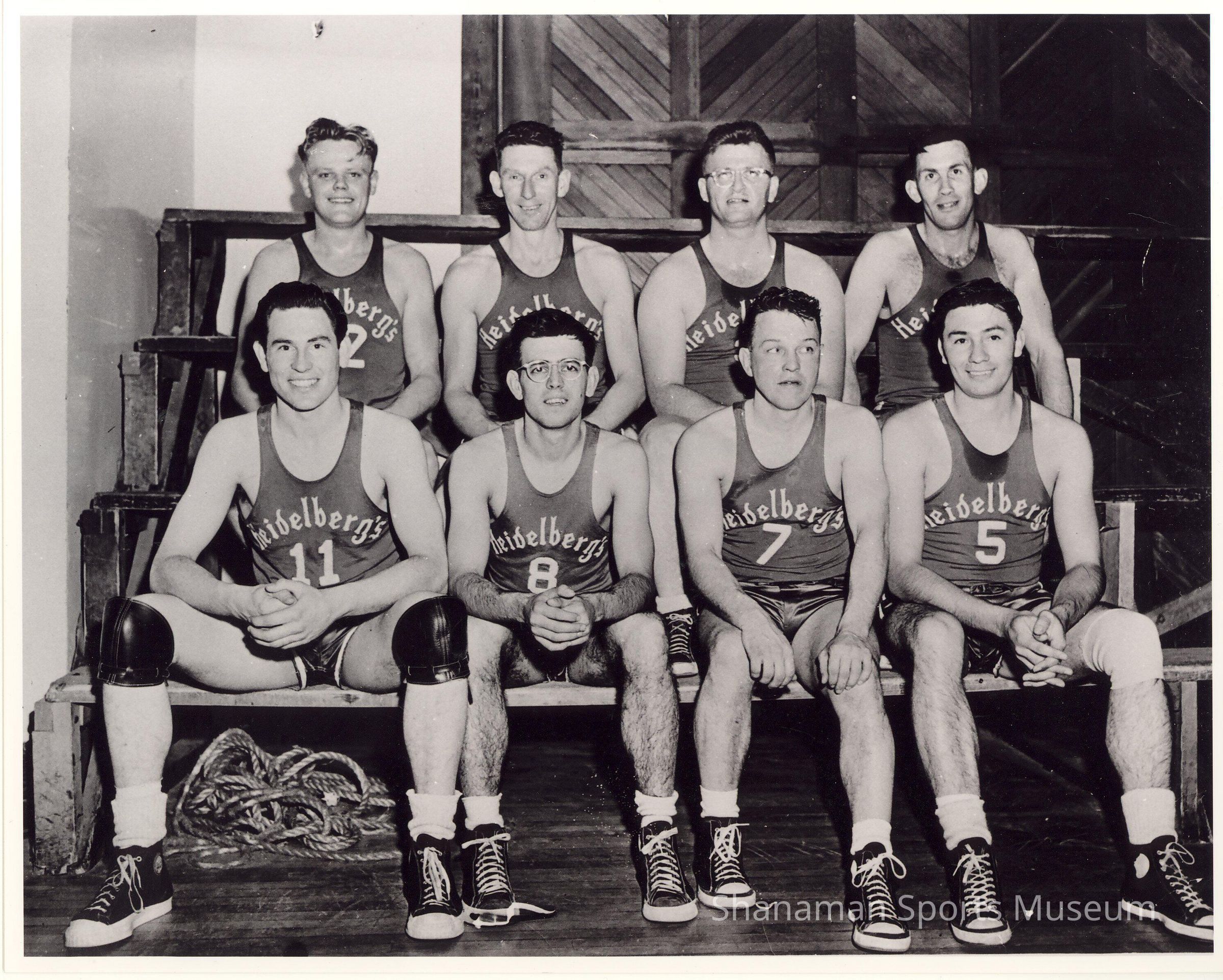 Willie McLaughlin, wearing jersey number 5, poses for a black-and-white team photo with the Heidelberg basketball team. Teammate Scott Names stands in the top row, second from the left. Later, McLaughlin played on the House of David basketball team with his brother, Harry McLaughlin. They were an impressive duo. Names, who graduated from Stadium High School in 1931, was an all-around athlete. Later in 1947, Names played on Tacoma's Lincoln Furniture basketball team that won the Fraternal League title.Lexicon