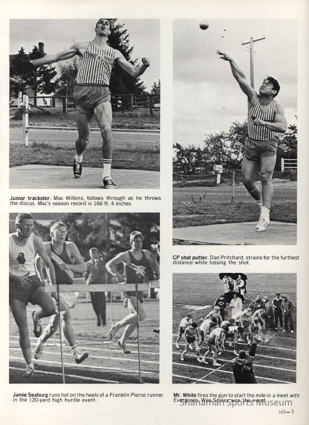 Program- of Clover Park High School 1968 spring sports including a photo of Mac Wilkins throwing discus and a team photo of the 1968 mens track team.