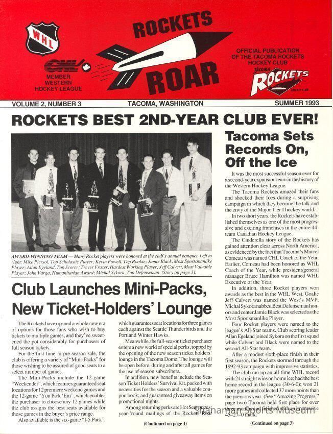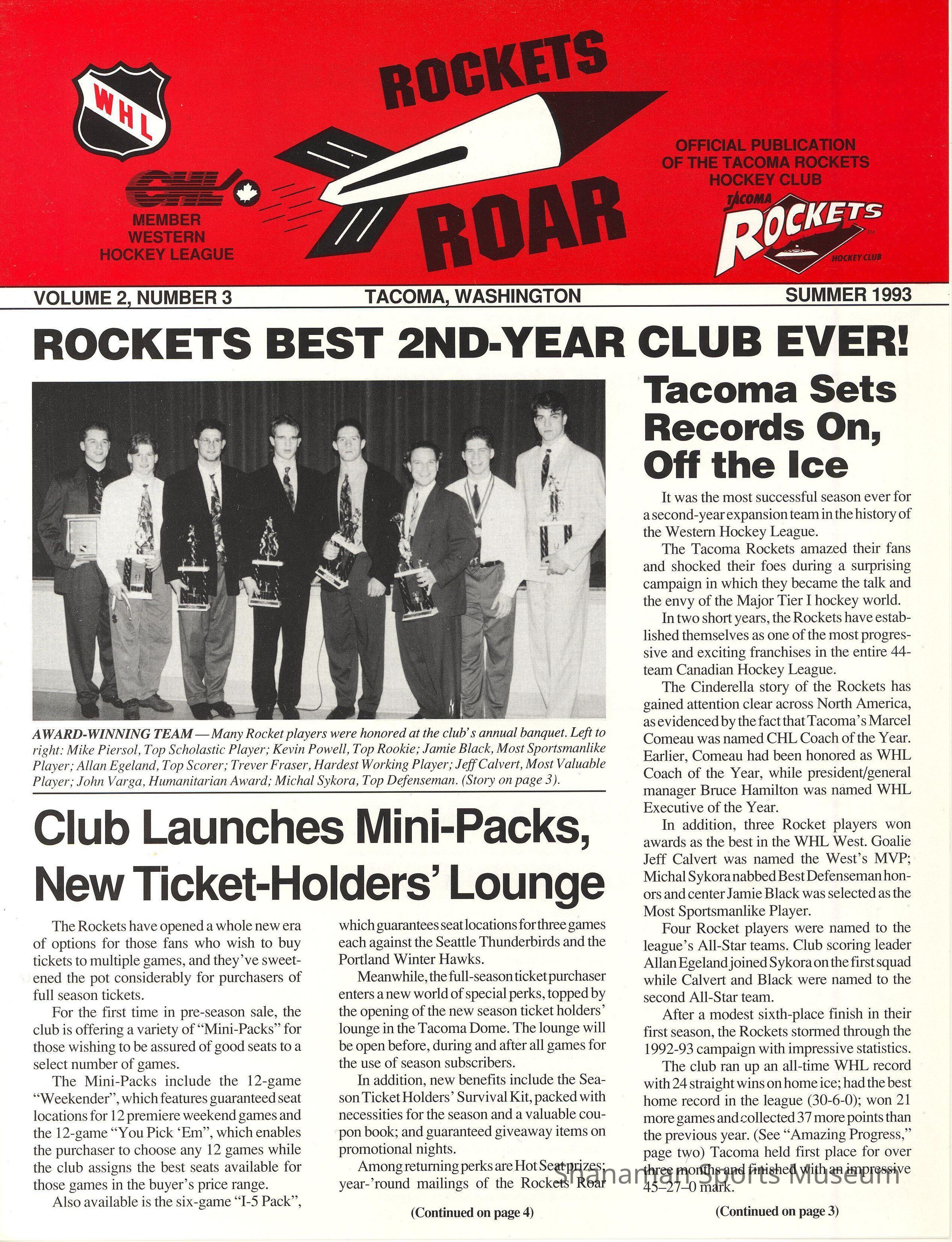 Newsletter- for the Tacoma Rockets Hockey Team, The Rockets Roar, vol. 2 no. 3, summer 1993. Headline is "Rockets Best 2nd-year Club Ever!"Relationships