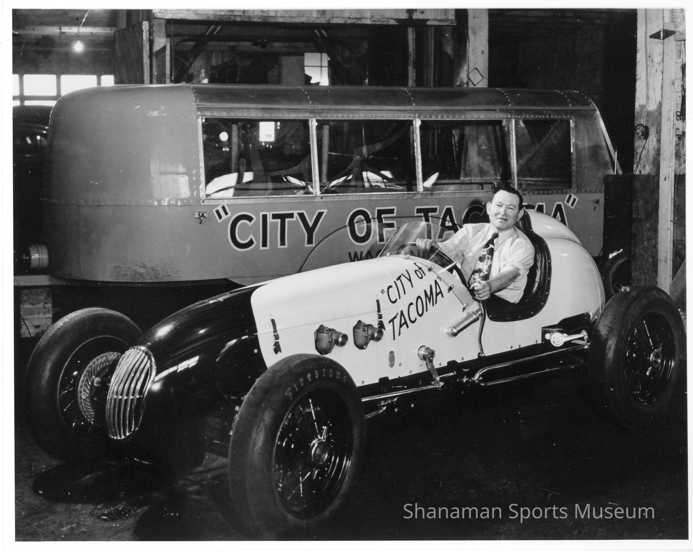 Leo Dobry, a longtime race car enthusiast from Tacoma, sits in his pride and joy, the race car he named “City of Tacoma.” His van sits in back of him with the same name, “City of Tacoma.” From 1949 to 1956, Dobry's race car “Tacoma” raced in a national championship 12 times. Dobry, who was born in 1902 and died in 1980, was a longtime race car enthusiast. He sold his car in 1950 and the car was dismantled in 1970 and and it was restored in 2010.Lexicon