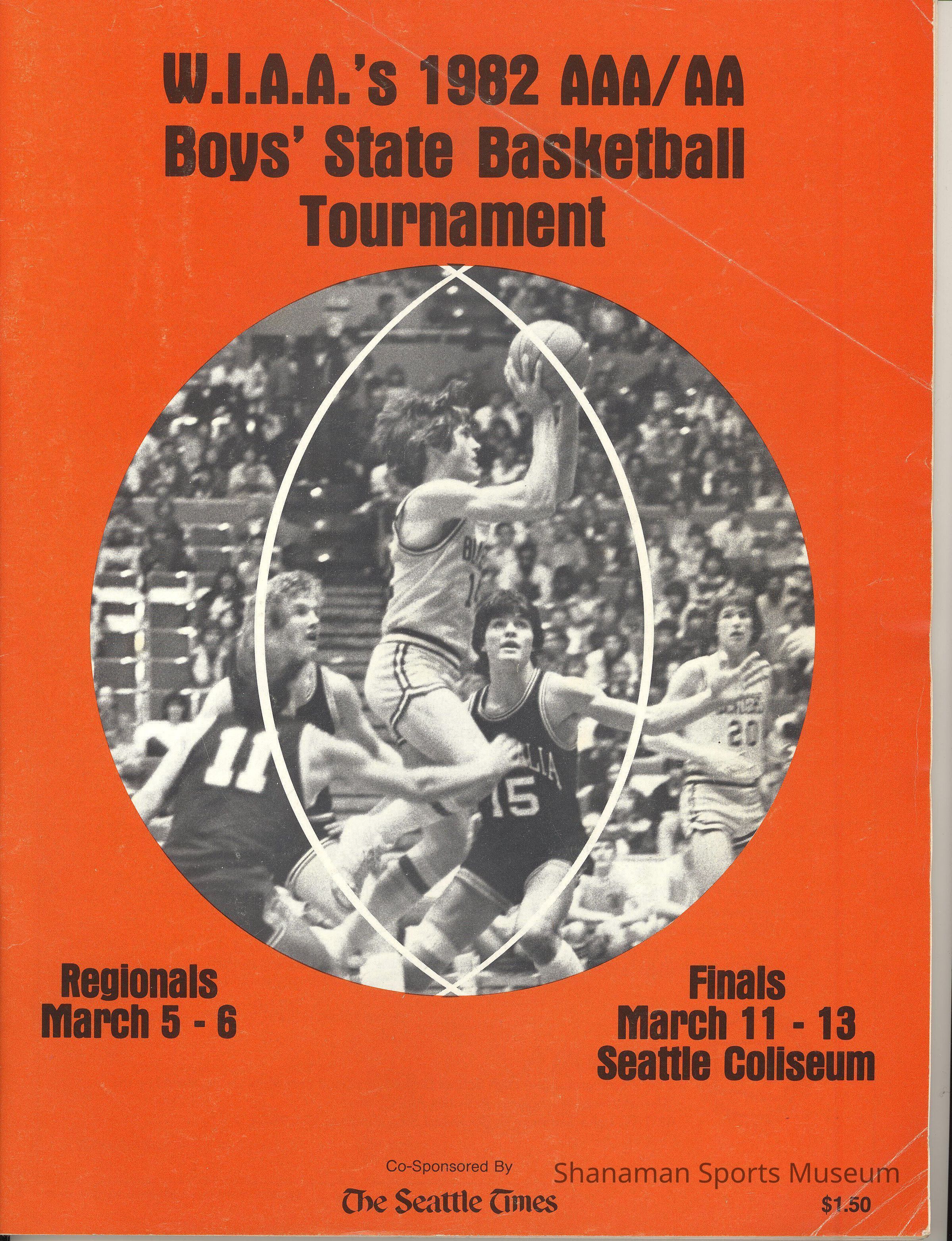 Program- 1982 AAA and AA Basketball Tournament, Regionals: March 5-6 and Finals: March 11-13, 1982.