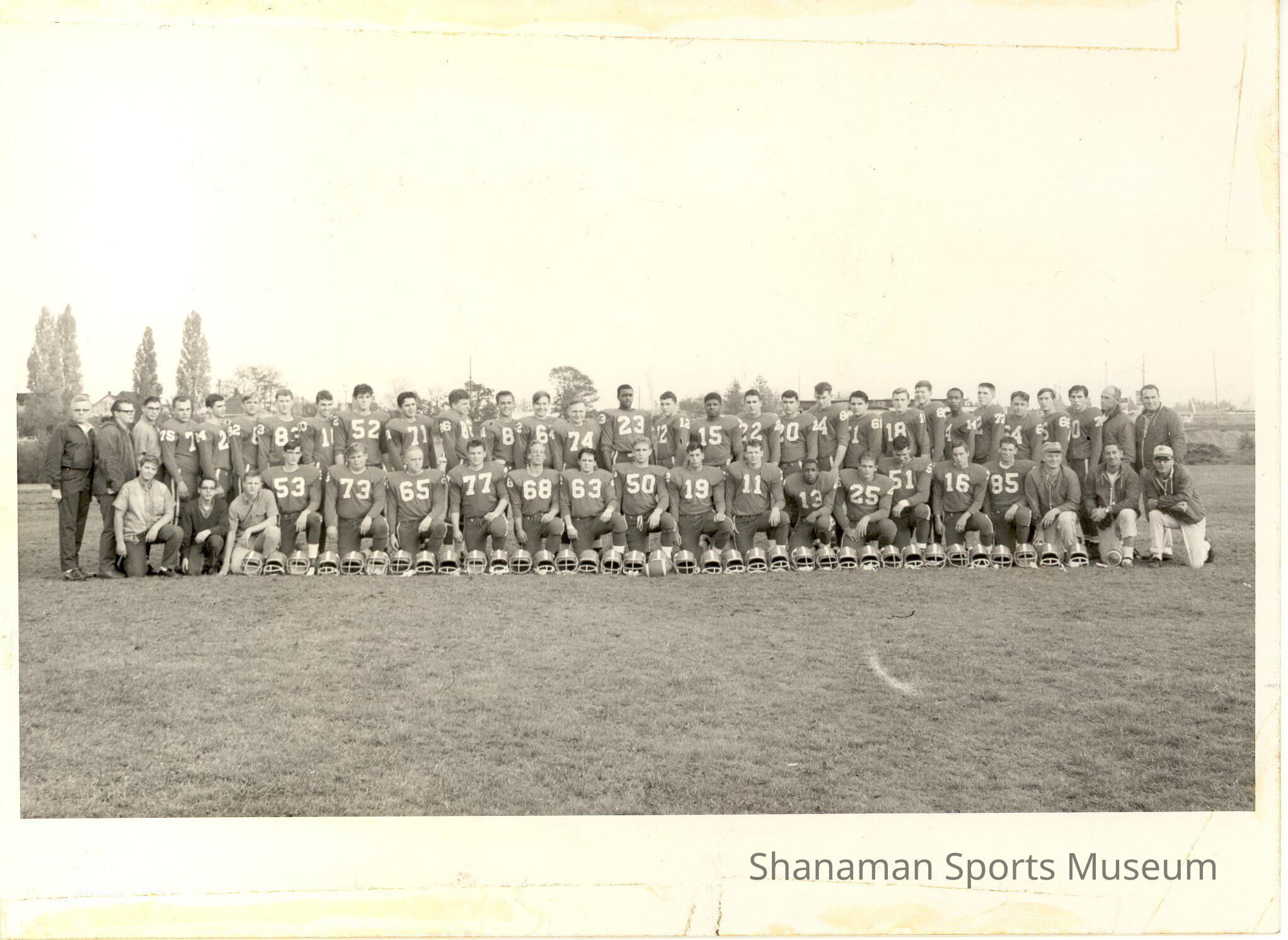 Bobby Moore, who later changed his named to Ahmad Rashad, stands in the top row wearing jersey number 23 along with his teammates from the 1966 Mount Tahoma High School football team. Rashad went on to play running back and wide receiver for the University of Washington. After his college days, he was drafted in the first round by the St. Louis Cardinals in the 1972 NFL draft. He'd play in four Pro Bowls in his NFL career. He'd follow his NFL career with doing commentating for NBC. He was inducted into the College Football Hall of Fame in 2007. Also in this team photo of Mt. Tahoma's football team are Reogre Nordi (far right) and Joe Stortini (second from right). Stortini was a big supporter of local sports and was the head coach of this team. While playing football at the College of Puget Sound in the 1950s, Stortini intercepted five passes in a game, breaking the school record.