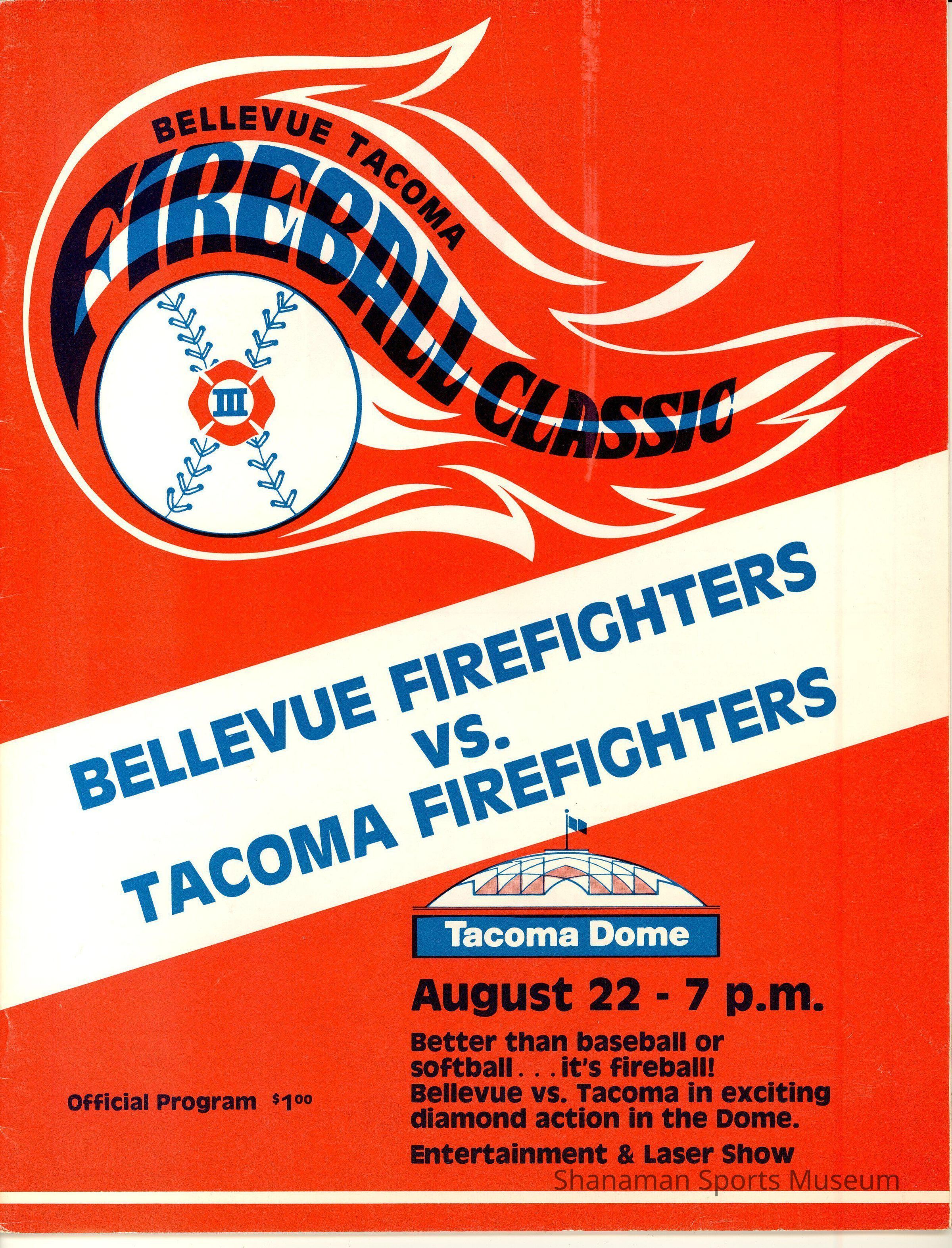Program- baseball, Fireball Classic with Bellevue vs. Tacoma Firefighters, August 22, 1986.Lexicon