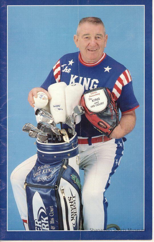 Program- softball, 51st year of The King and His Court 4-man softball team, 1996. Eddie "the king" Feigner pictured on the front.Lexicon