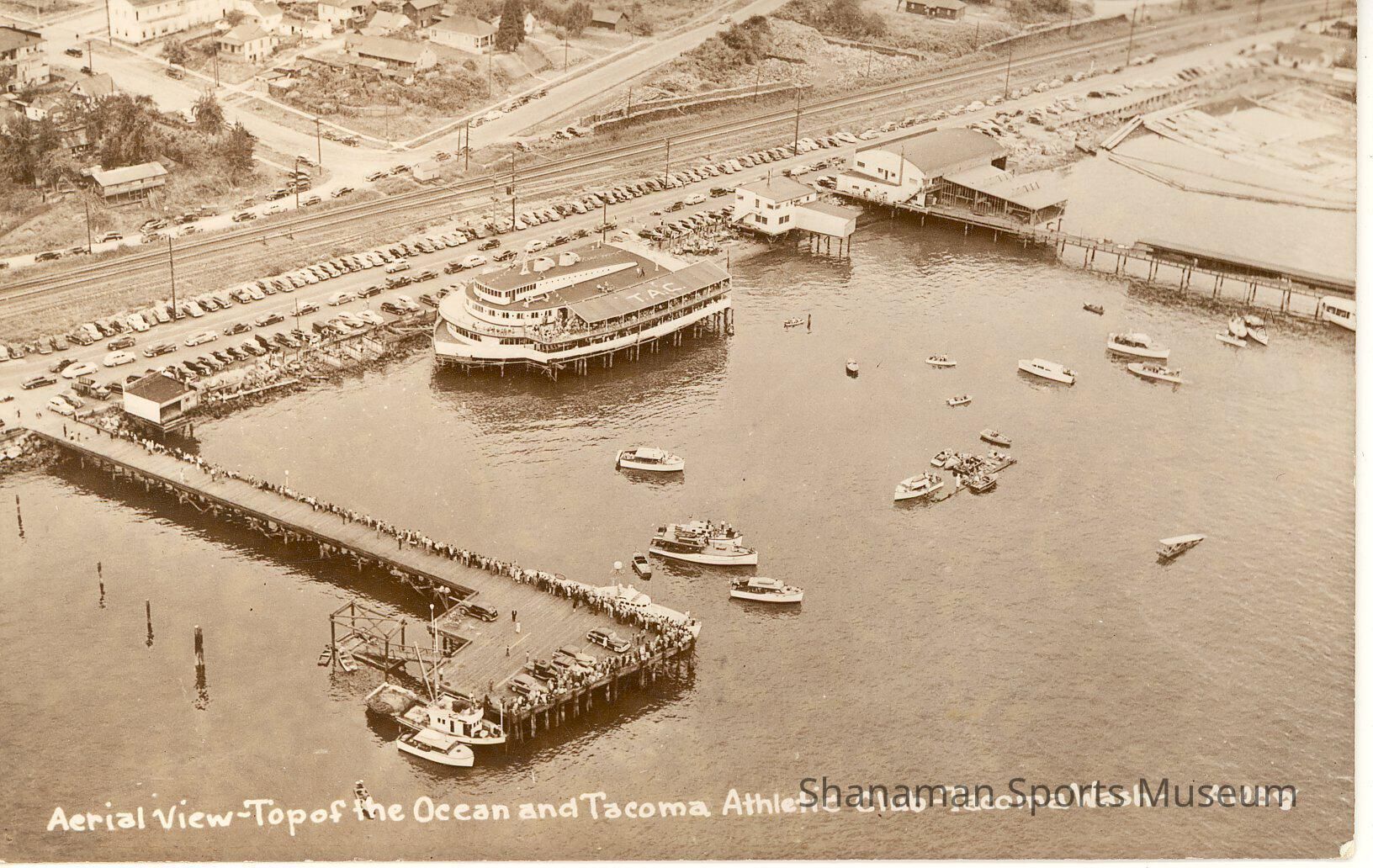 Postcard- b/w aerial view of The Top of the Ocean and Tacoma Athletic Club- Tacoma, WA, c. 1940s.Lexicon