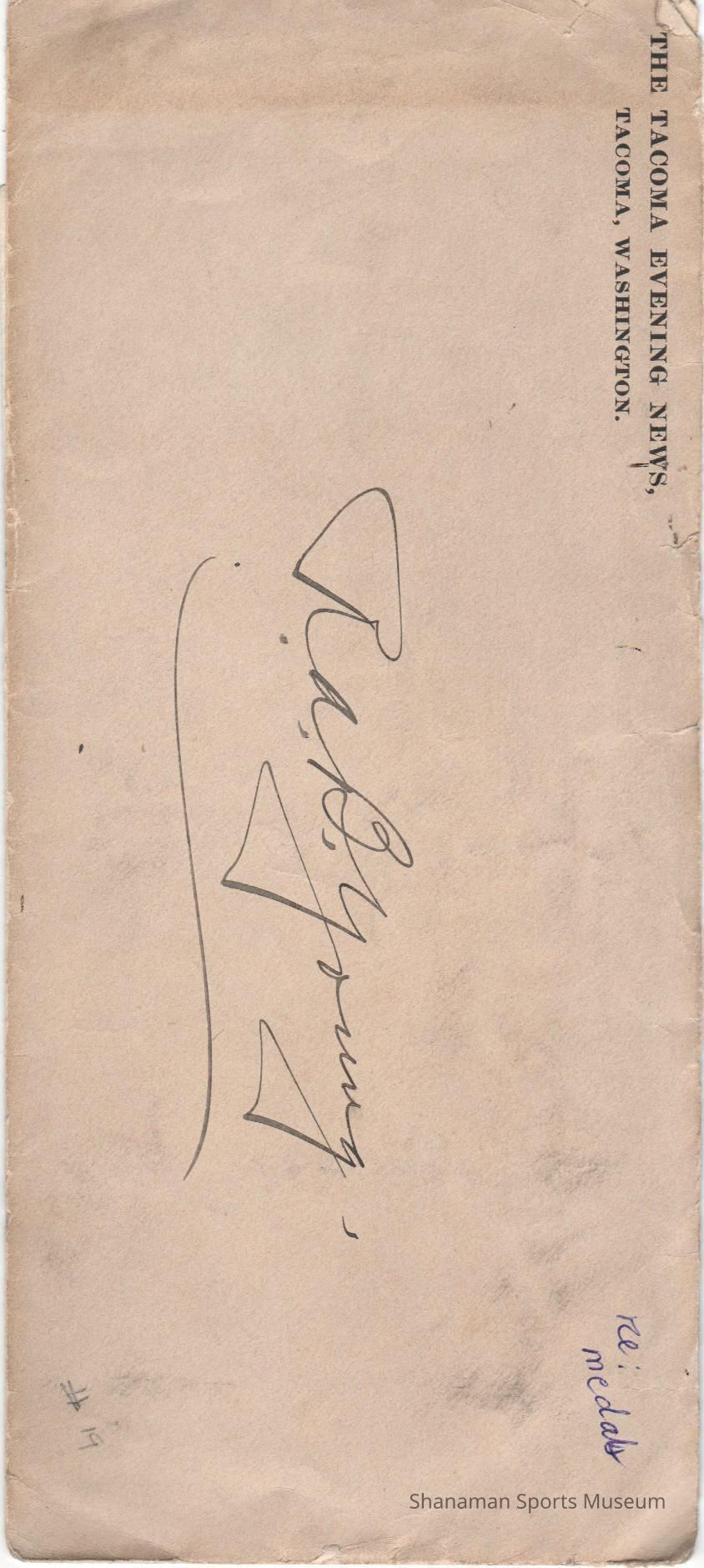 Envelope- addressed to R.A.B. Young from The Tacoma Evening News, Tacoma, Washington.
