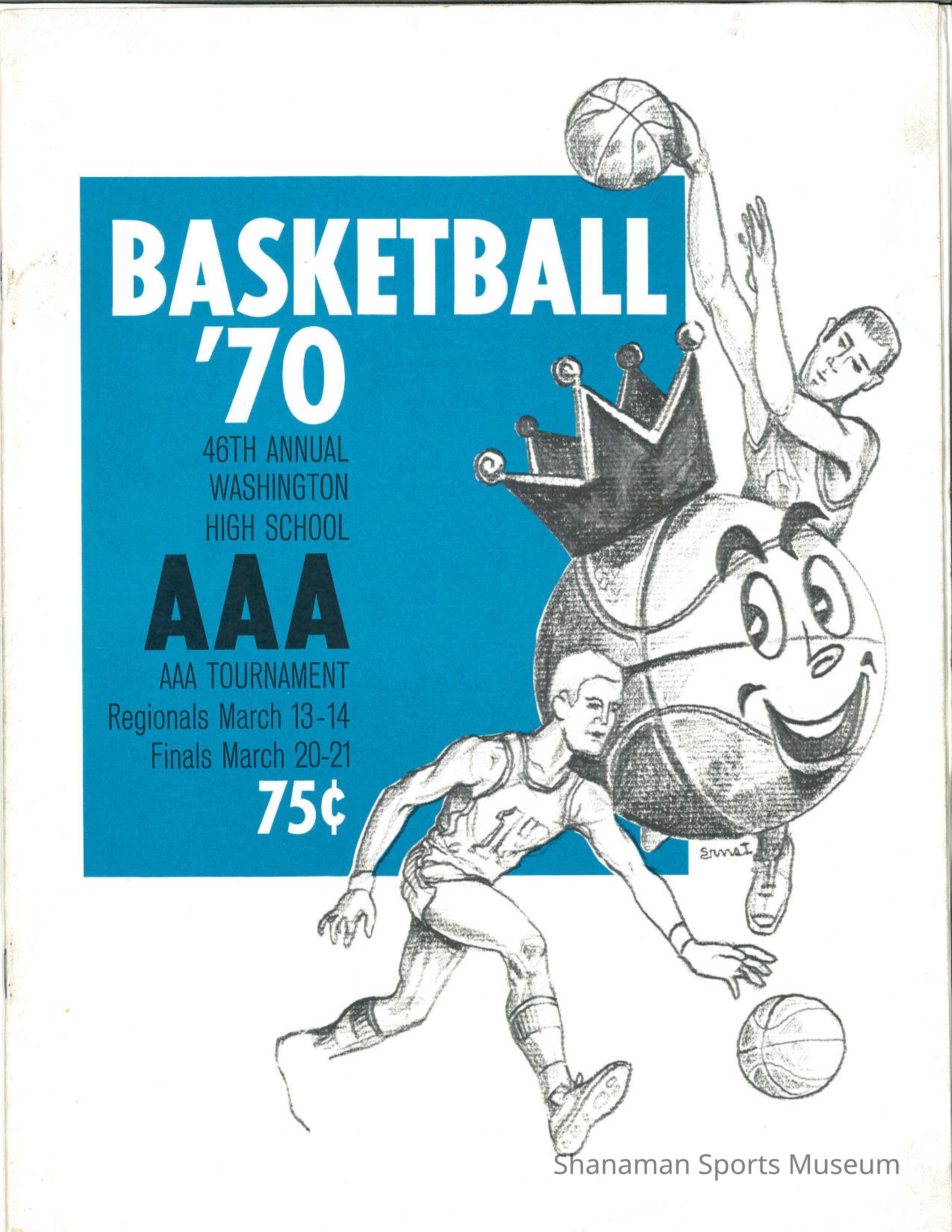 Program, basketball, 1970 high school, Mens AAA Tournament, 46th Annual, Regionals March 13-14 and Finals March 20-21, 1970.