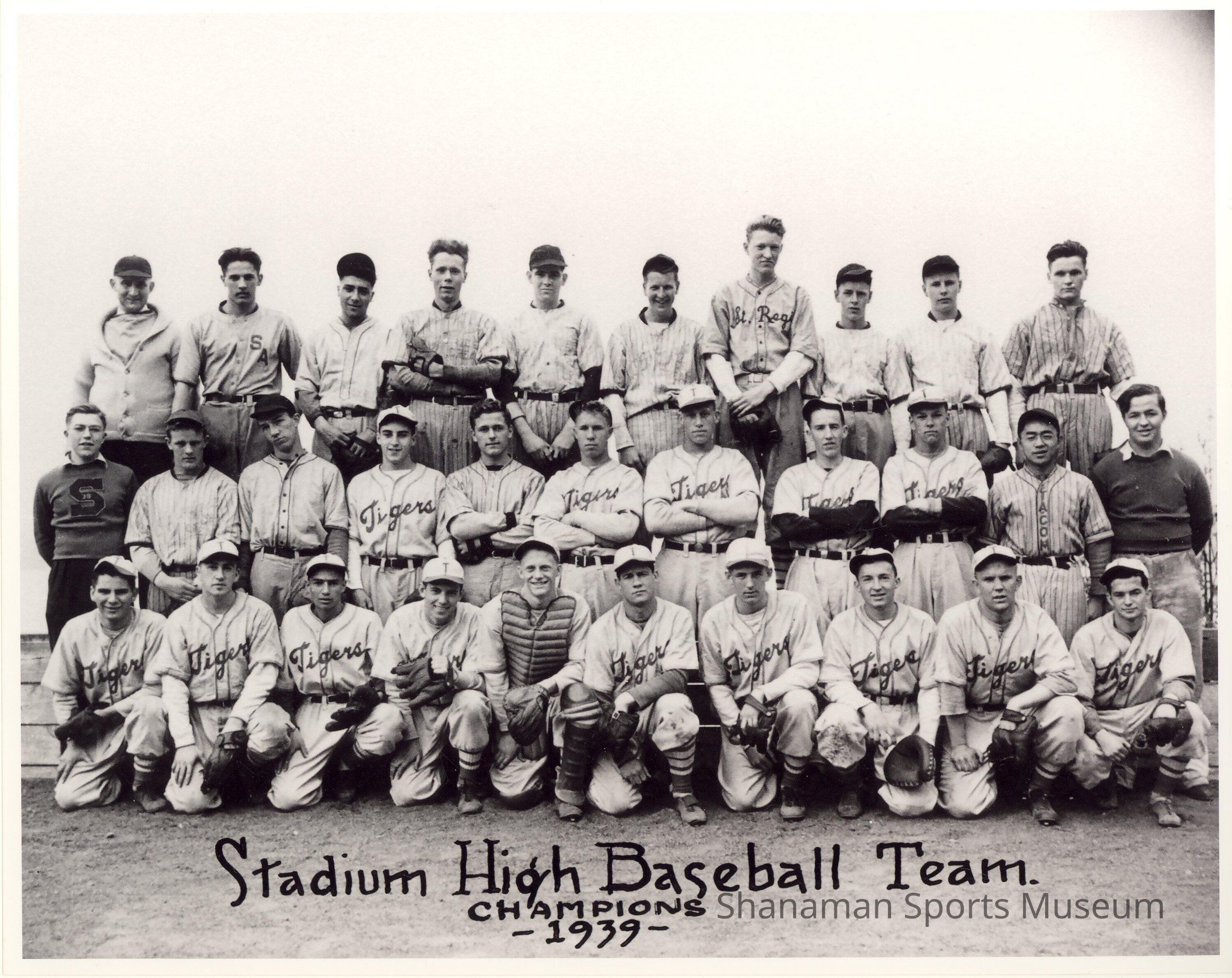 The 1939 Stadium High School baseball team poses for a team photo. John Heinrick, a Stadium graduate, coached the Tigers to the City and Cross State League titles that season.