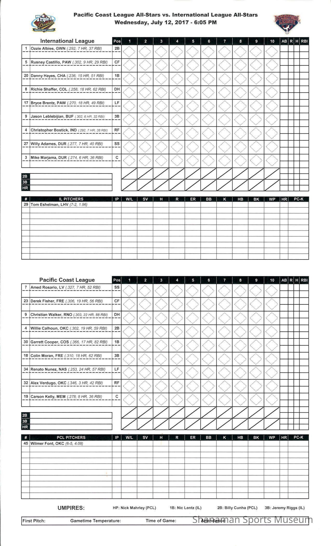 Scoresheet- blank, Triple A All Star Game, July, 12, 2017.