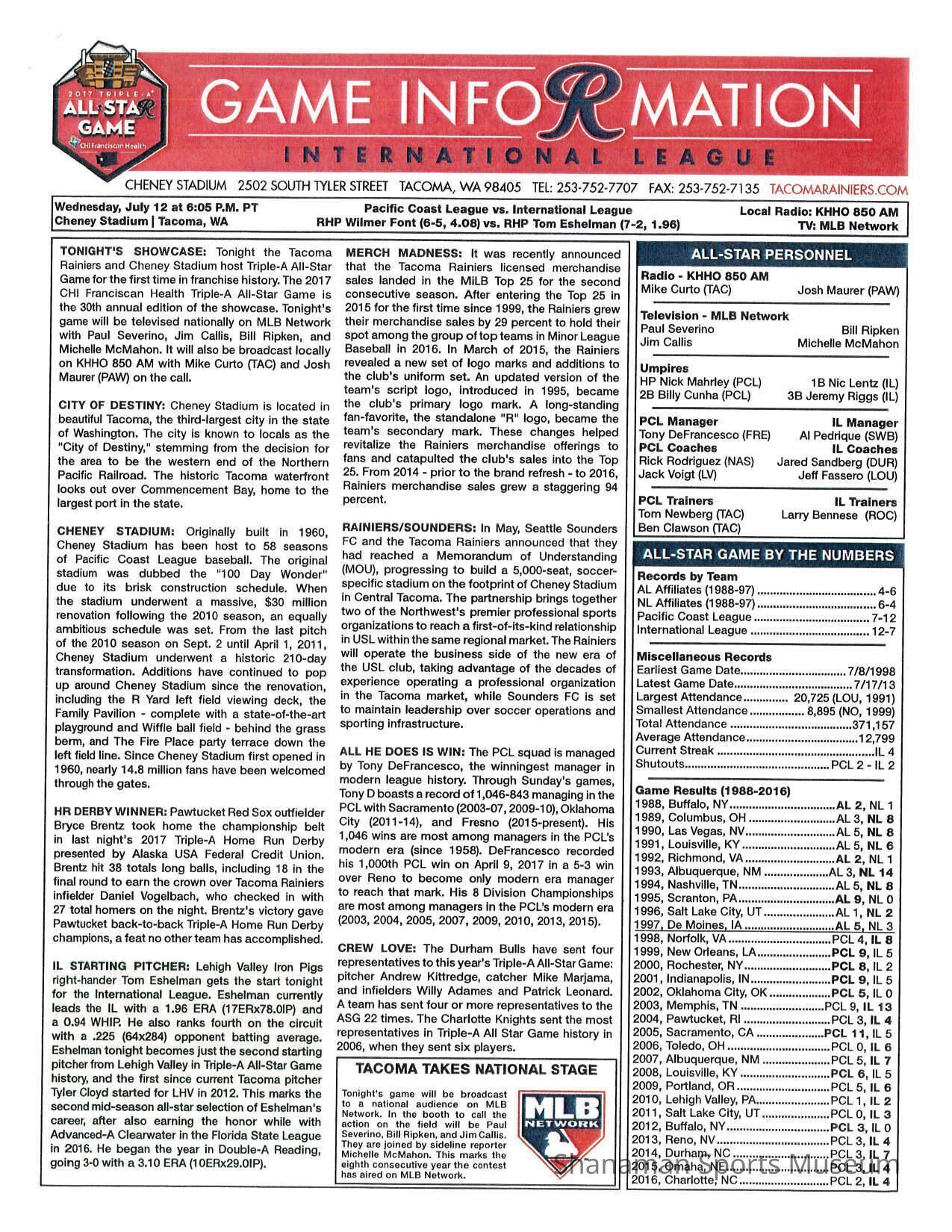 Game Information Sheet- International League, Triple A All Star Game, July 12, 2017.