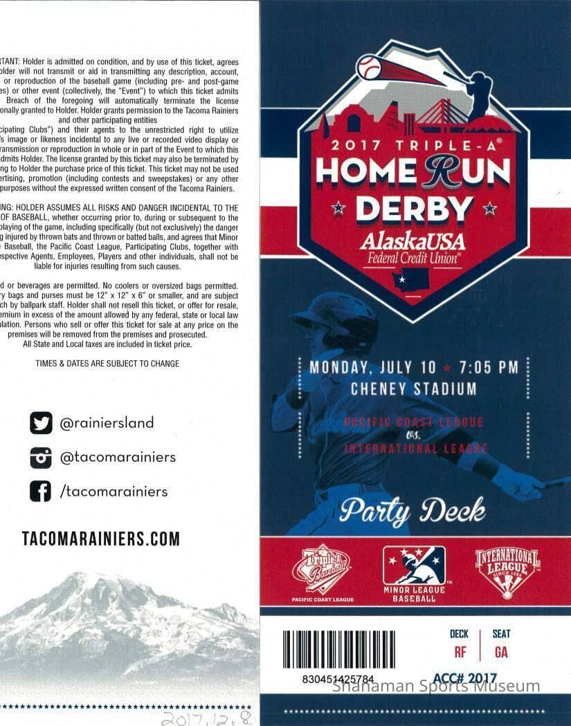 Ticket- baseball game, 2017 Triple A Home Run Derby, July 10, 2017.