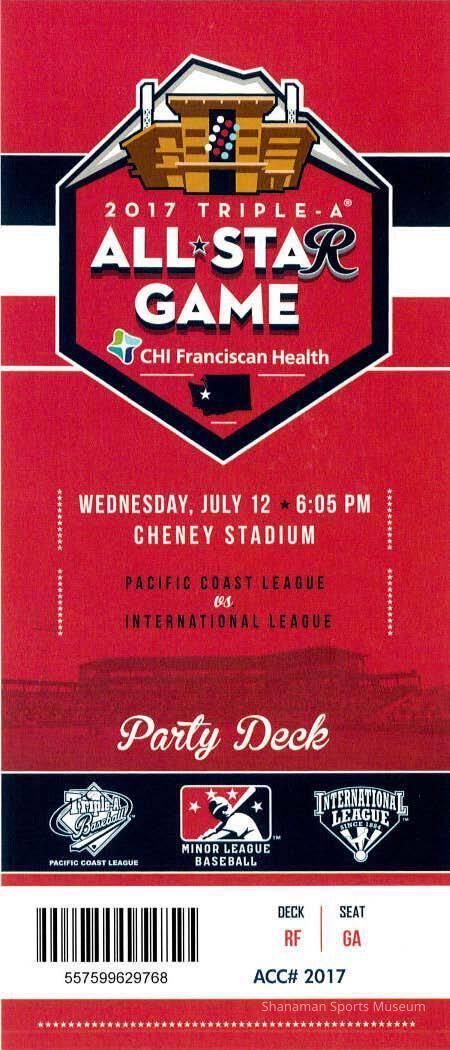 Ticket- baseball game, 2017 Triple A All Star Game, Party Deck, July 12, 2017.